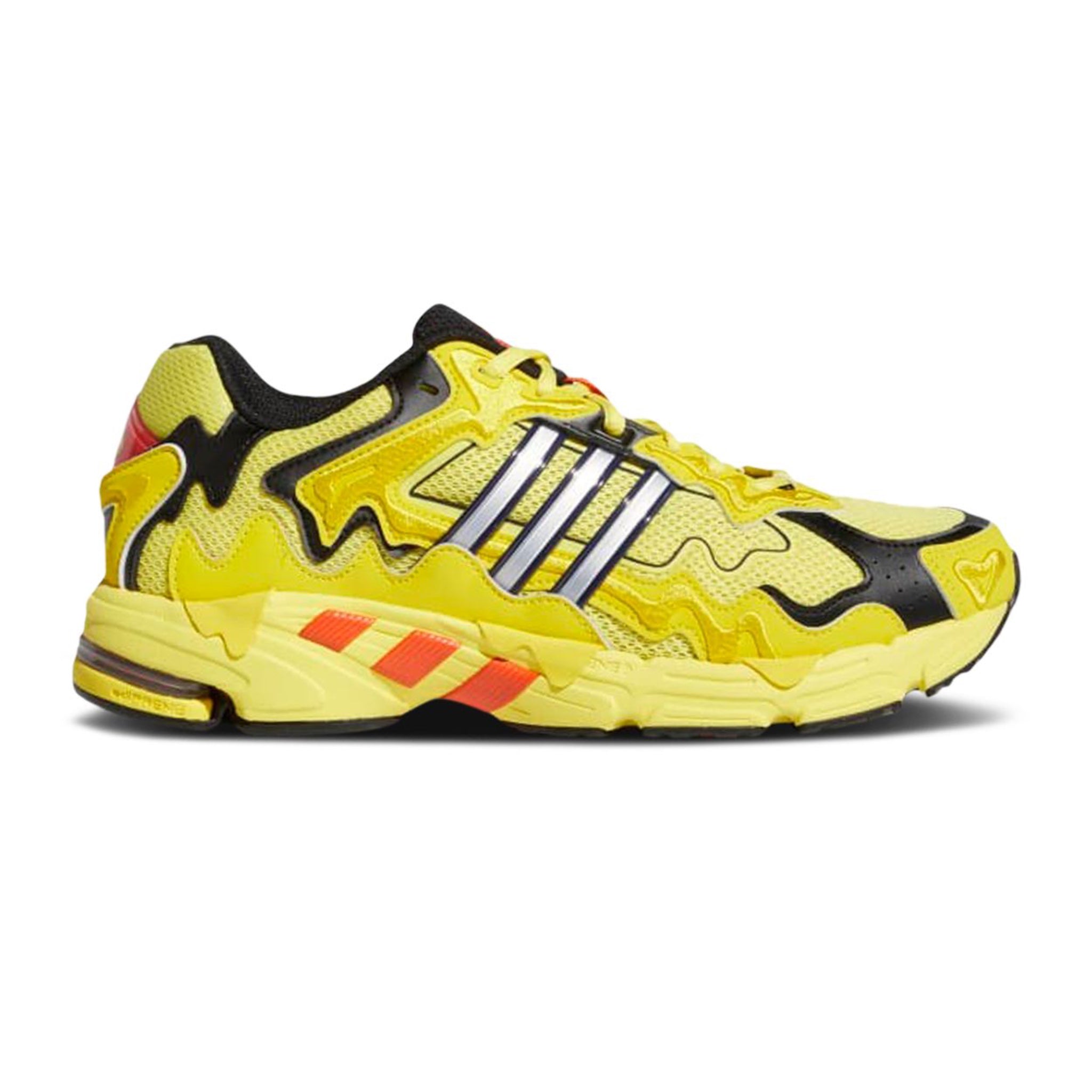 The Bad Bunny x adidas Response CL ‘Yellow’ is a nod to the Puerto Rican pop star’s favorite color in a familiar runner from the early 2000’s. The yellow adiPRENE midsole is embossed with adidas three-stripe branding, while the upper in a matching mesh features black leather overlays that ‘melt,’ likely symbolizing the artist’s fluid approach to music. The adidas logo appears in a vivid orange on the tongue and the back heel is embellished with Bad Bunny’s third eye graphic.