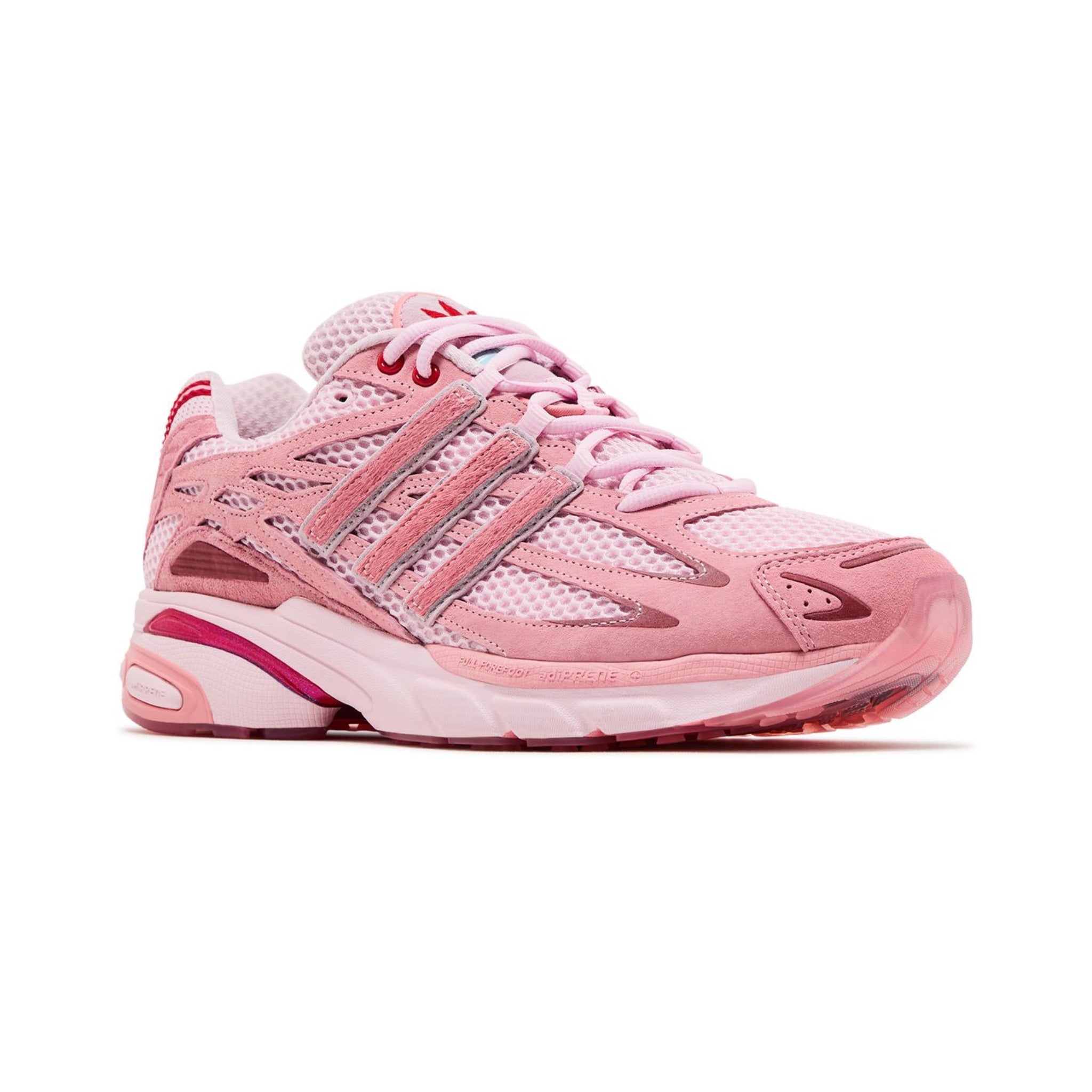 A nod to the Cincinnati sneaker boutique's mascot, the Unheardof x adidas Adistar Cushion 3 'Captain Piggy' was limited to only 1500 pairs. These shoes have a pastel pink upper that blends an open-cell mesh upper with suede overlays and leather three-stripes. Mismatched tongue tags showcase a Trefoil on the right shoe and Captain Piggy's face on the left. His expressive eyes can be seen on the heel tab and the see-through rubber outsole of the left shoe.