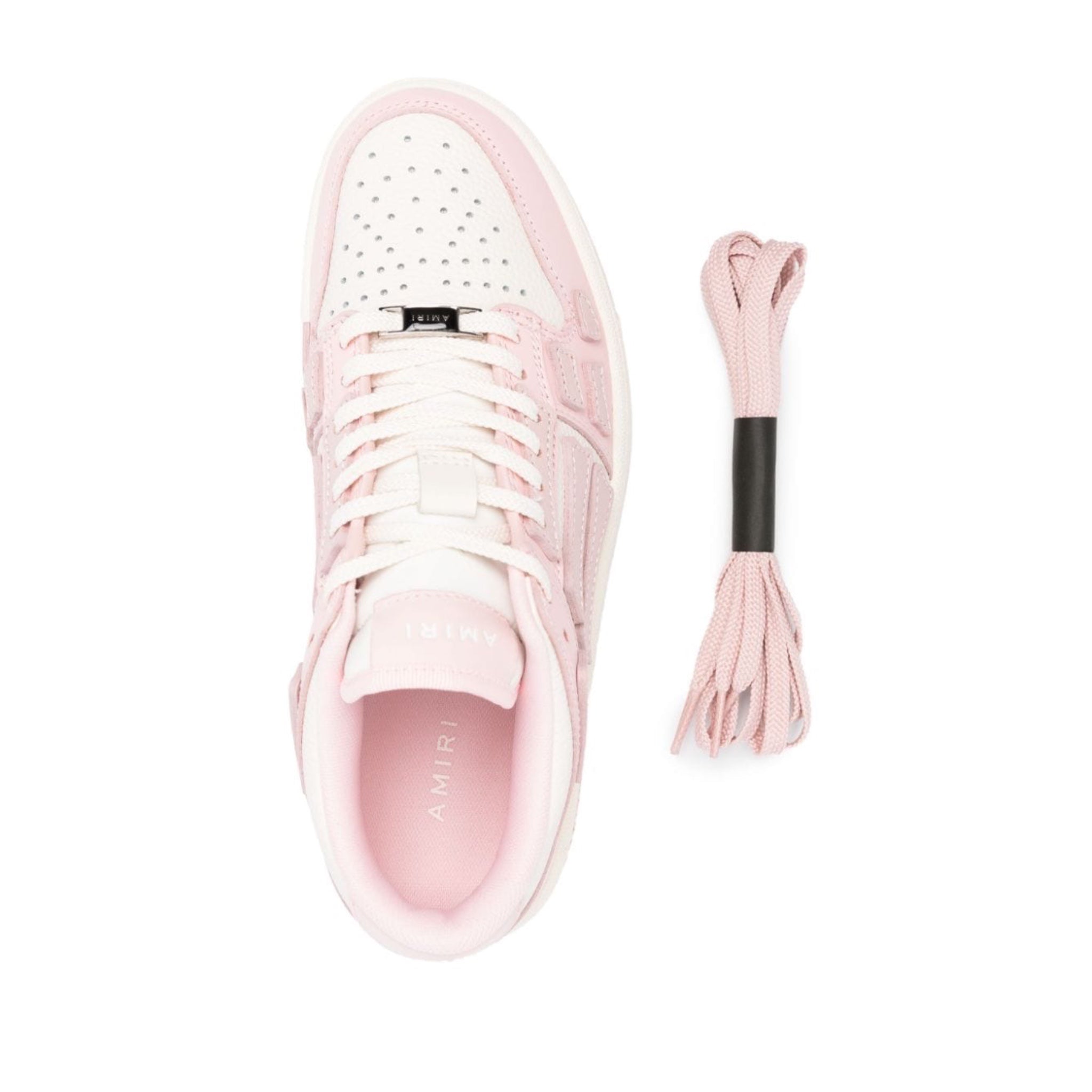 Sewn skeleton accents add dimension and texture to this white and pink iteration of AMIRI's Skeltop sneakers, crafted from smooth calf leather and branded at the tongue and heel counter.