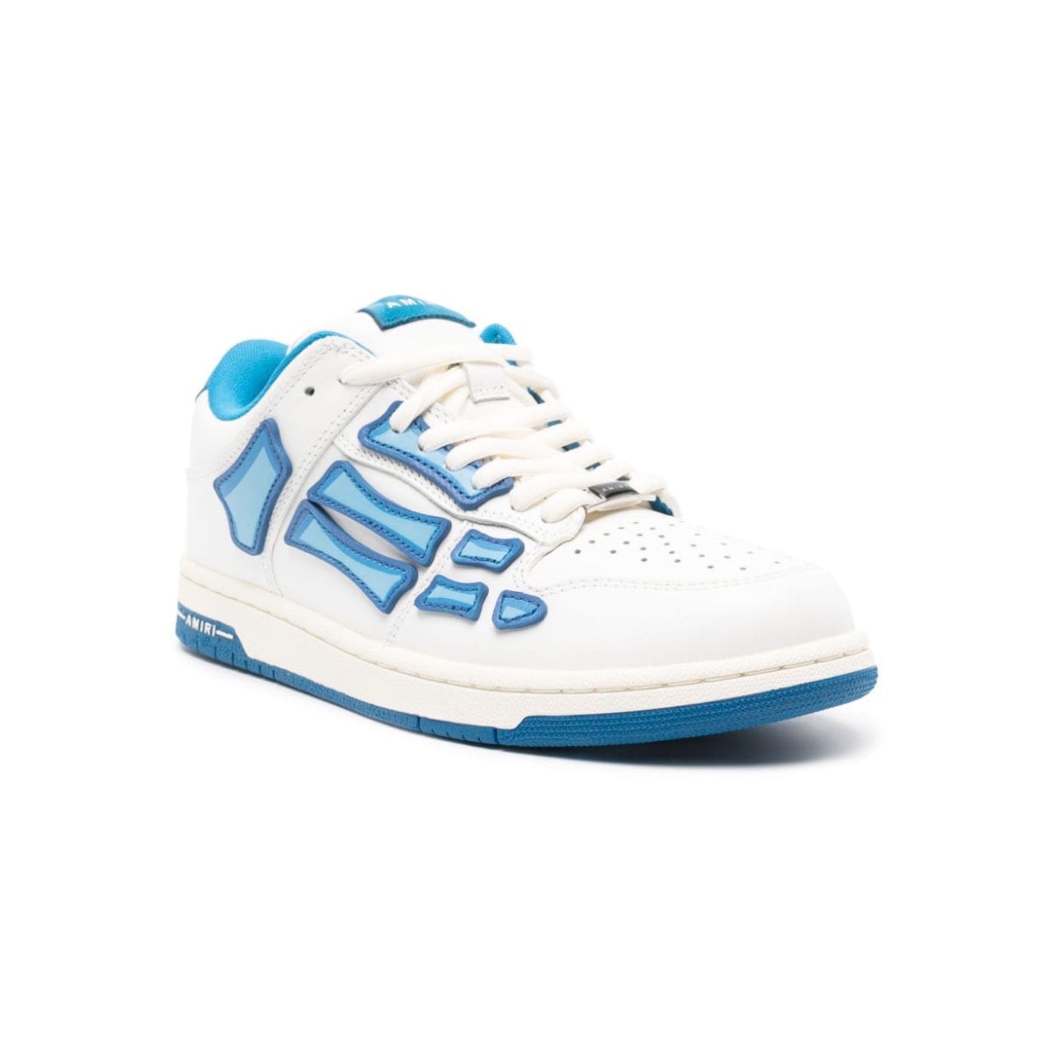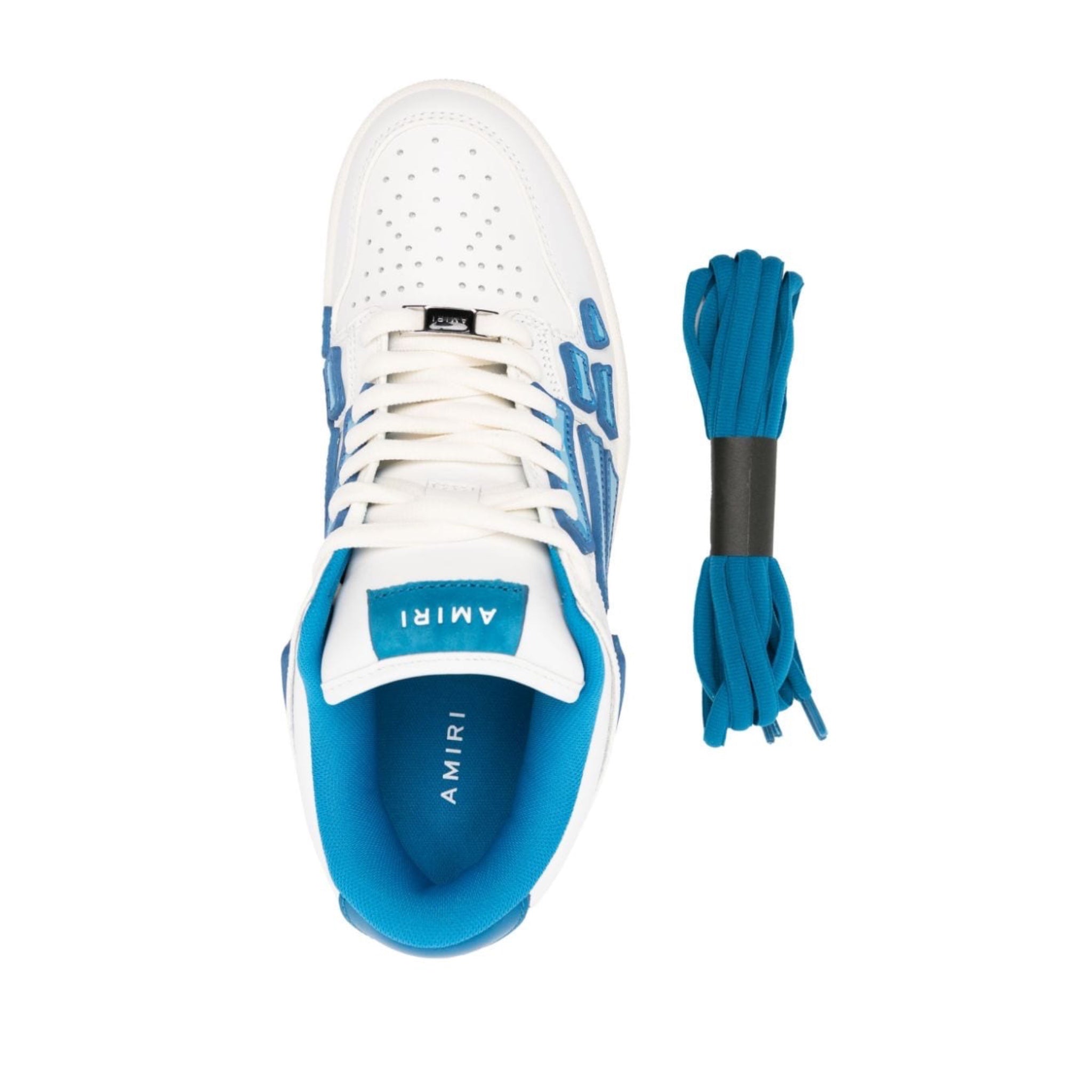 AMIRI's Skel Top sneakers are made from leather with the label's signature bone appliqués embellishing the sides. Arriving in a white and blue colourway, the pair features logo lettering at the heel counters for a branded finish.
