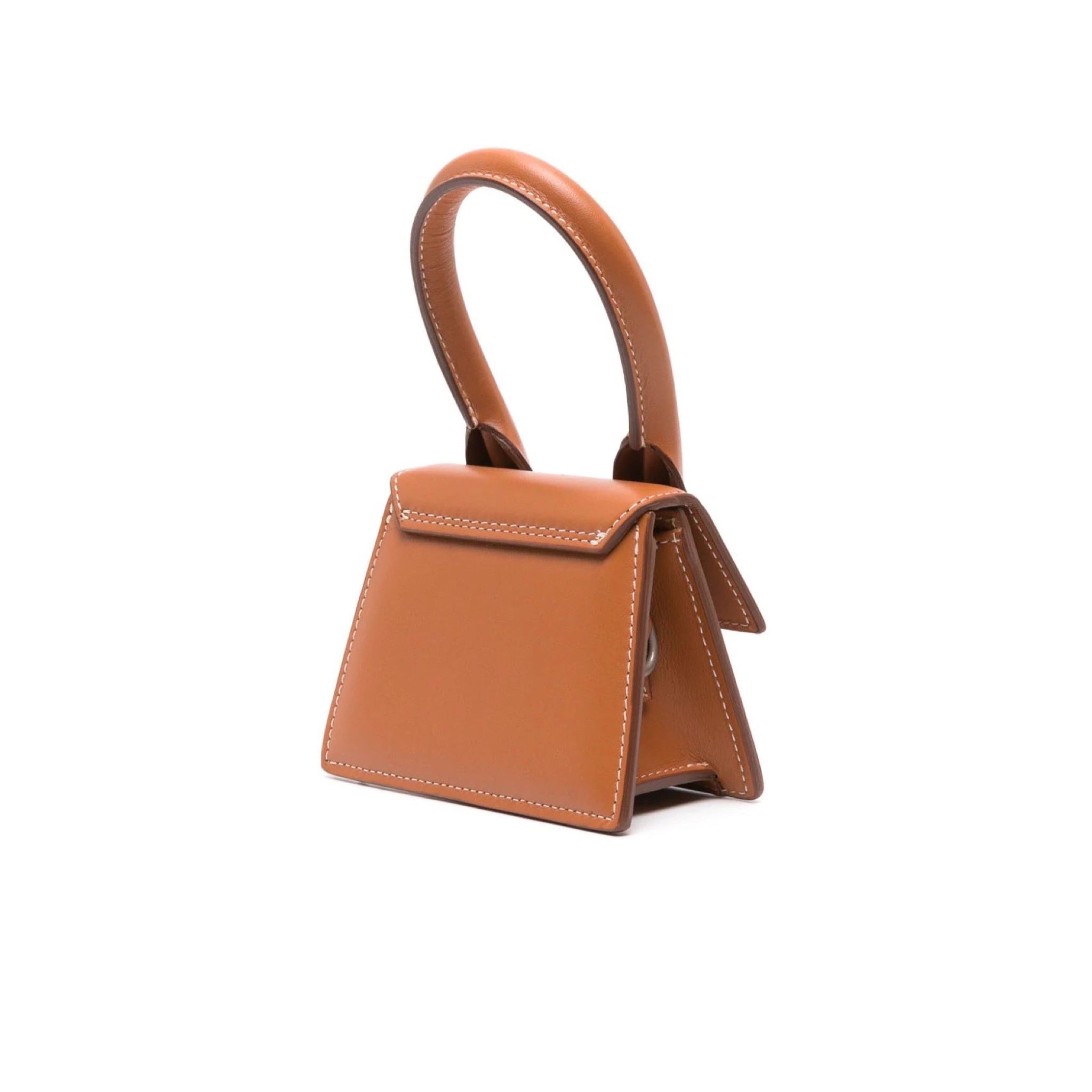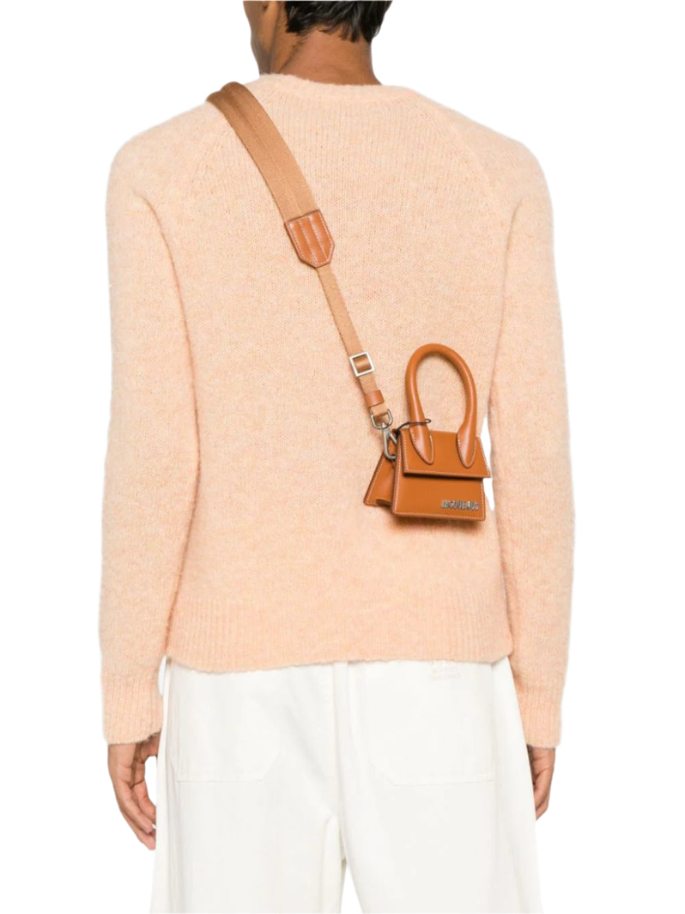Debuted in AW19, the Chiquito bag has become an iconic Jacquemus symbol. Seen here in a small-sized version, the silhouette is presented in a tobbaco brown hue and accented with a silver-tone lettering logo.
