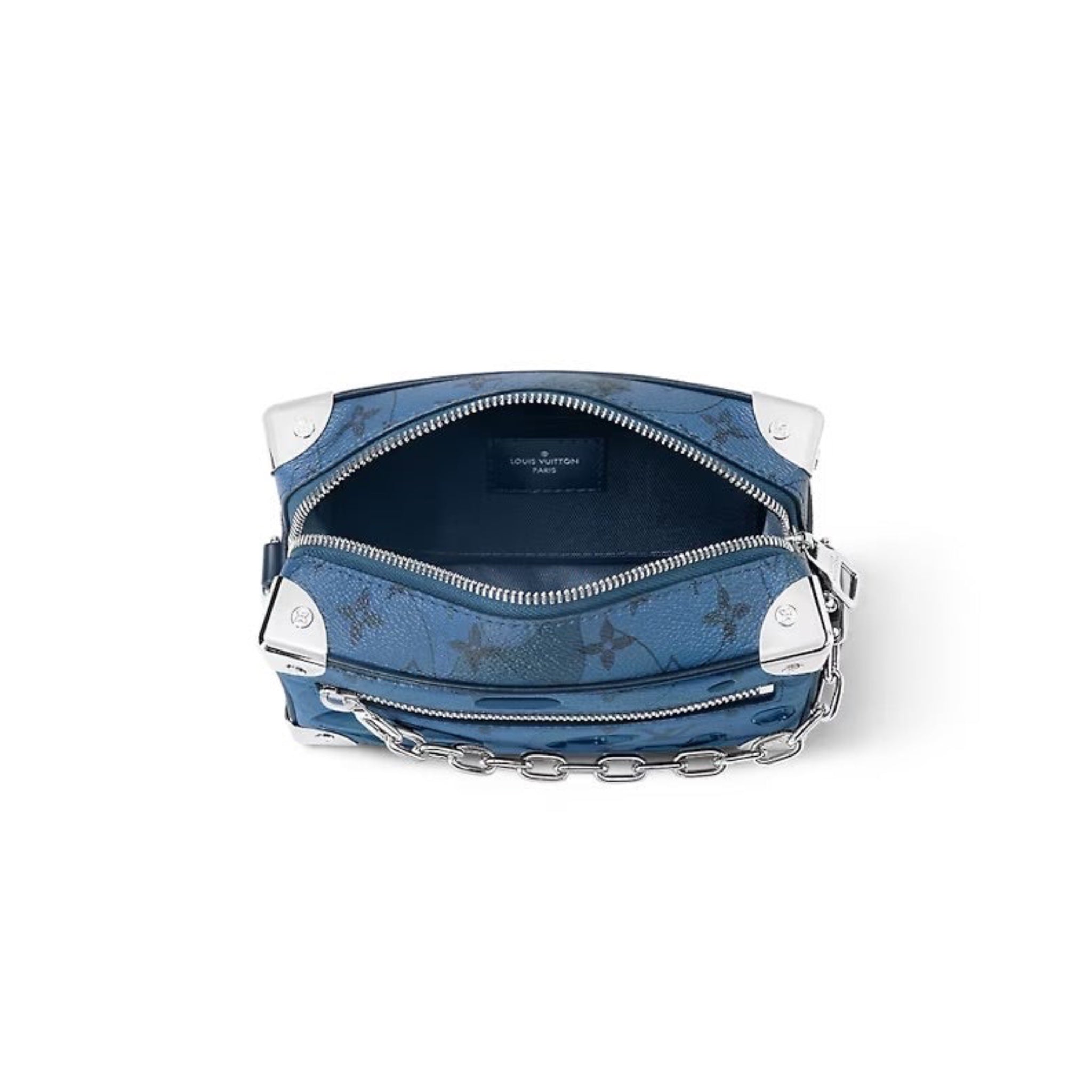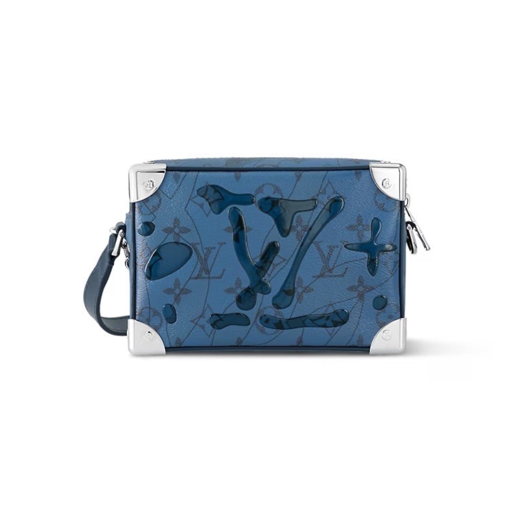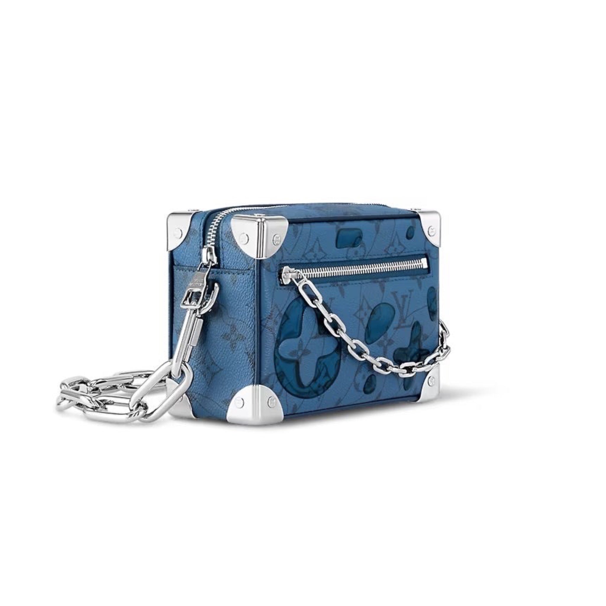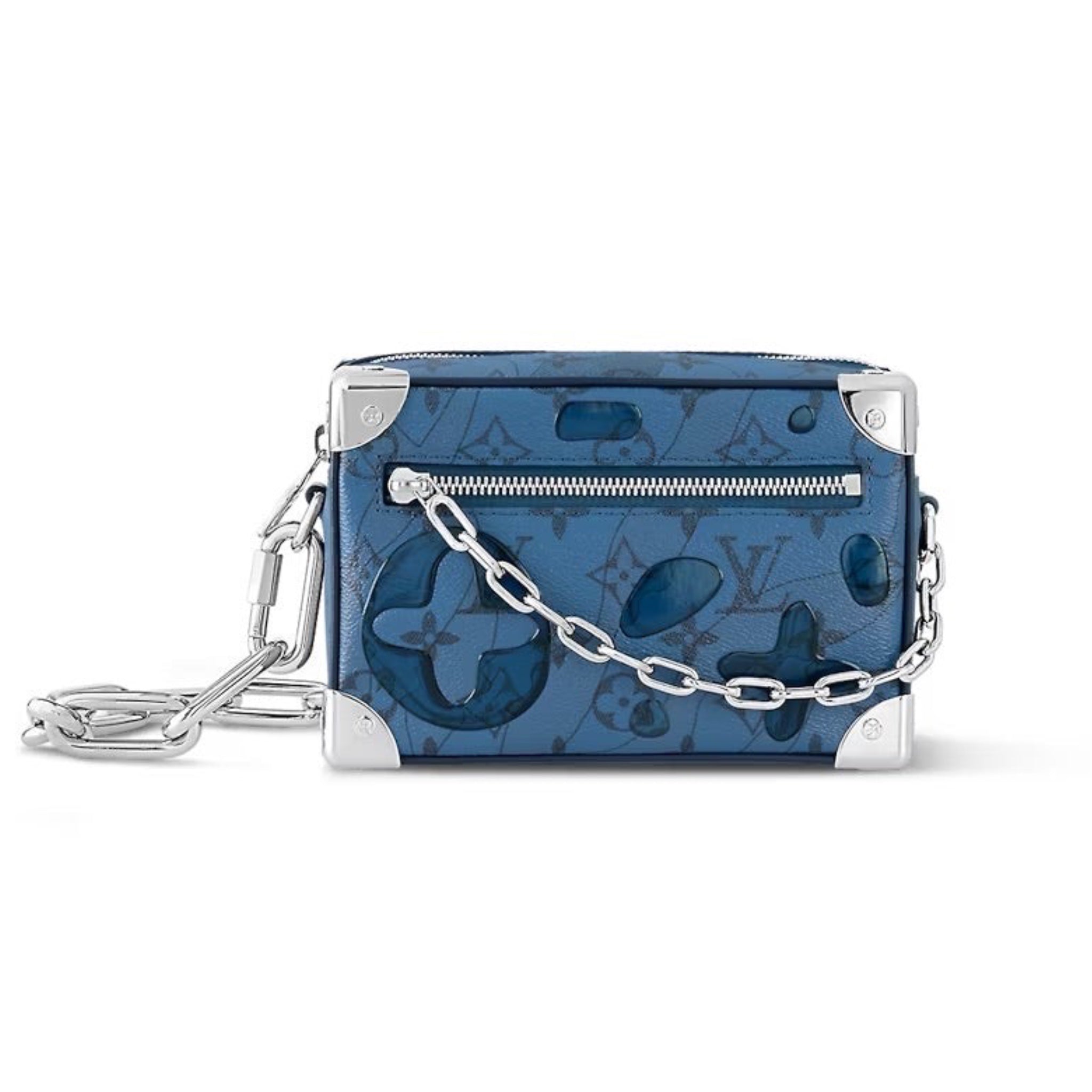 The Mini Soft Trunk takes one of the House’s most iconic shapes and fashions it in Monogram Aquagarden canvas, with its 3-D effect of splashes of water on the Monogram. The silver-color reinforced corners and chunky chain make it shine. This street-smart city bag is perfect for everyday essentials.