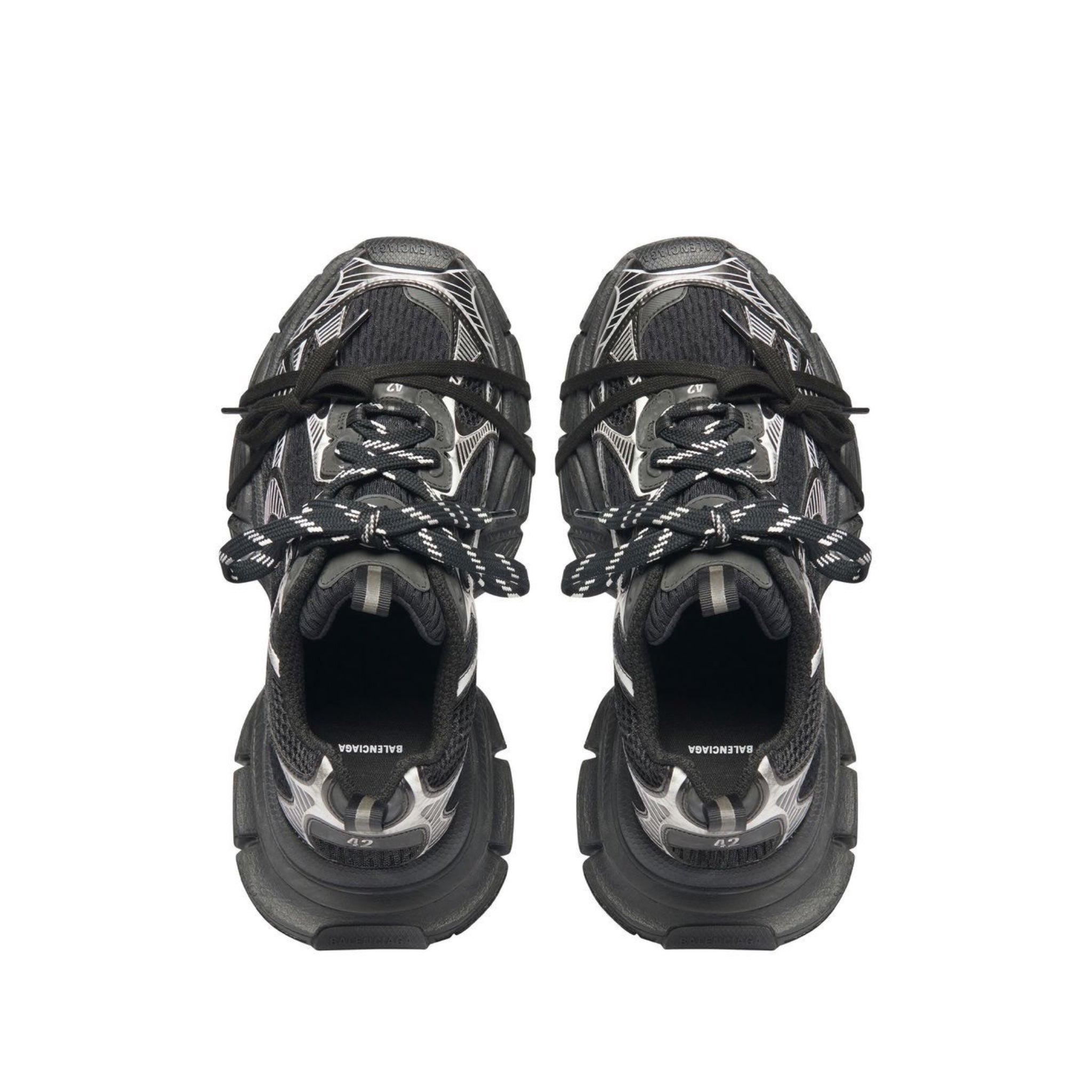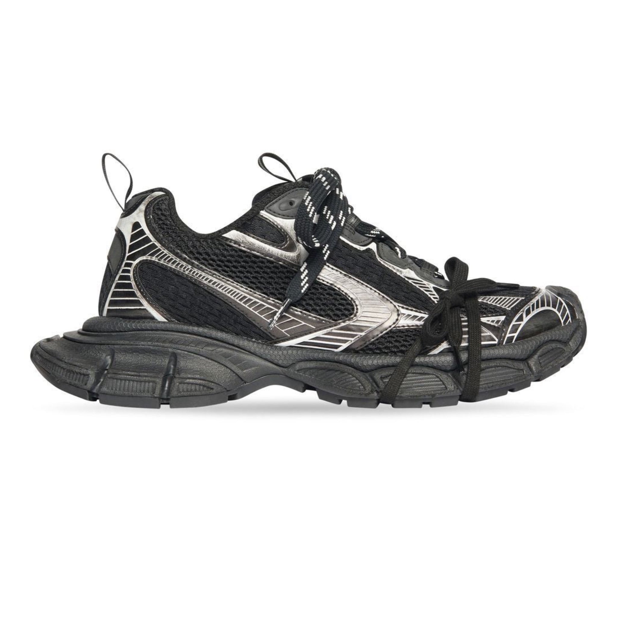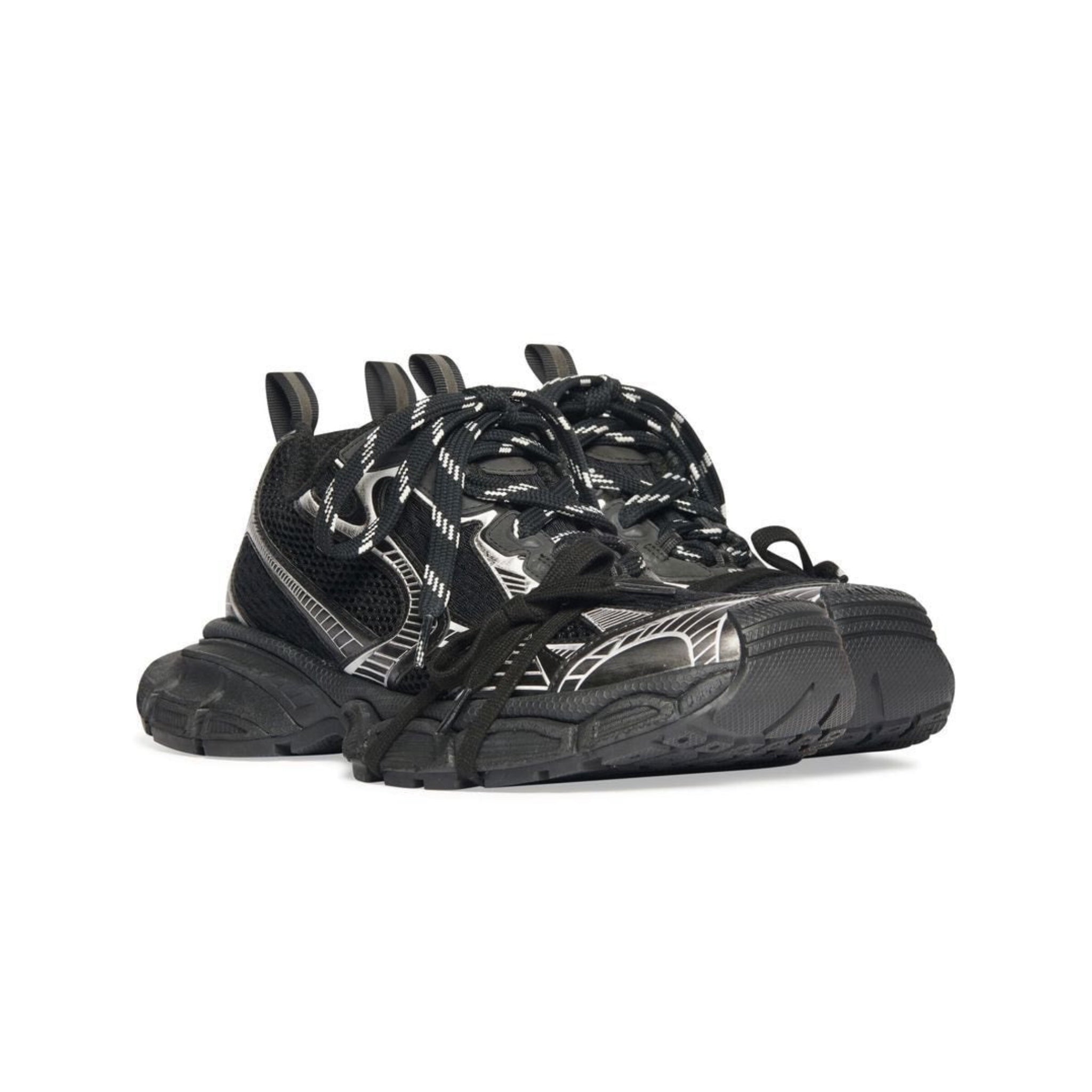 Widely recognized by the dramatic shape of its sole, the 3XL sneakers are a prime example of Balenciaga's keen eye for disruption and cultural referencing. The model takes on the quintessential running shoes of the 2000s and overemphasises elements such as the laces — present as a fastening method and decoratively around the toe — and the distressed effect.