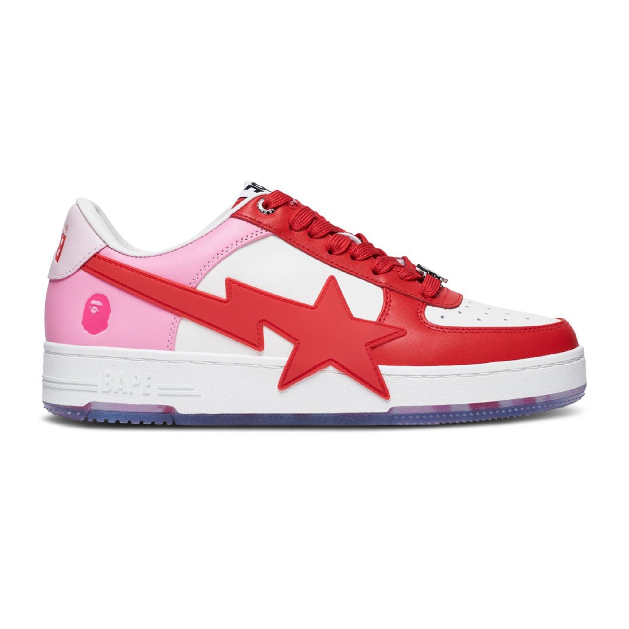 The A BATHING APE® Bapesta OS M2 'Pink' offers a vibrant take on the iconic Bapesta silhouette, featuring a bold pink colorway that blends streetwear flair with standout style. Crafted with premium materials and the signature star logo, this model balances eye-catching aesthetics with durable construction, making it a refined choice for collectors and fashion-forward sneaker enthusiasts.