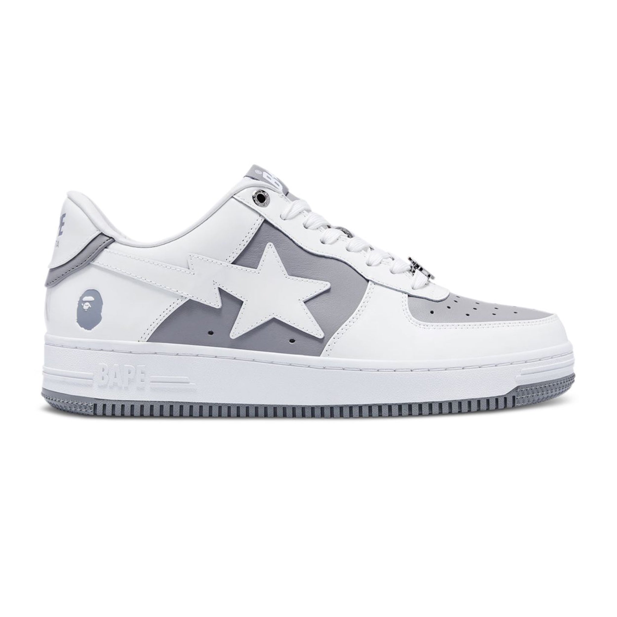 The A BATHING APE® Bapesta #6 'Patent Leather Pack - Grey' combines iconic streetwear style with premium craftsmanship. Featuring a sleek grey patent leather upper, this sneaker offers a polished look while maintaining the brand’s signature bold silhouette. Designed for both comfort and durability, it’s an ideal choice for collectors and enthusiasts seeking a standout piece that elevates any urban outfit.