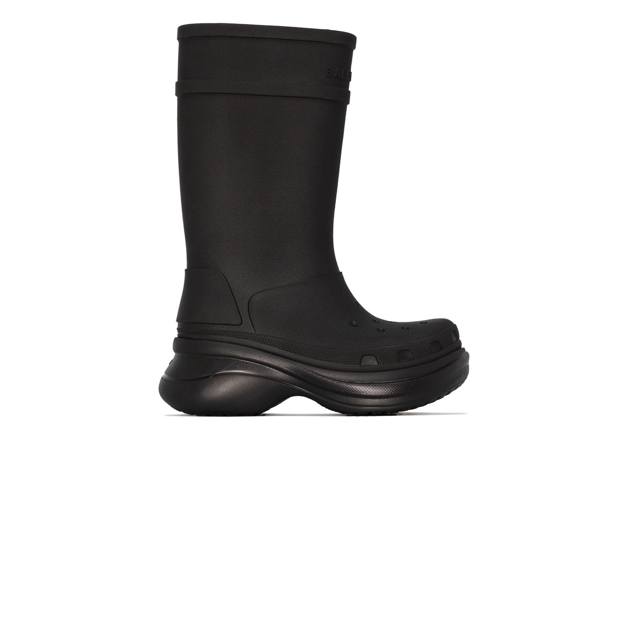 Balenciaga meets Crocs. These rubber rain boots are embossed with logo lettering on the front and have an all-over tonal aesthetic. The pair sits on a chunky sole to echo the look of the original shoes.