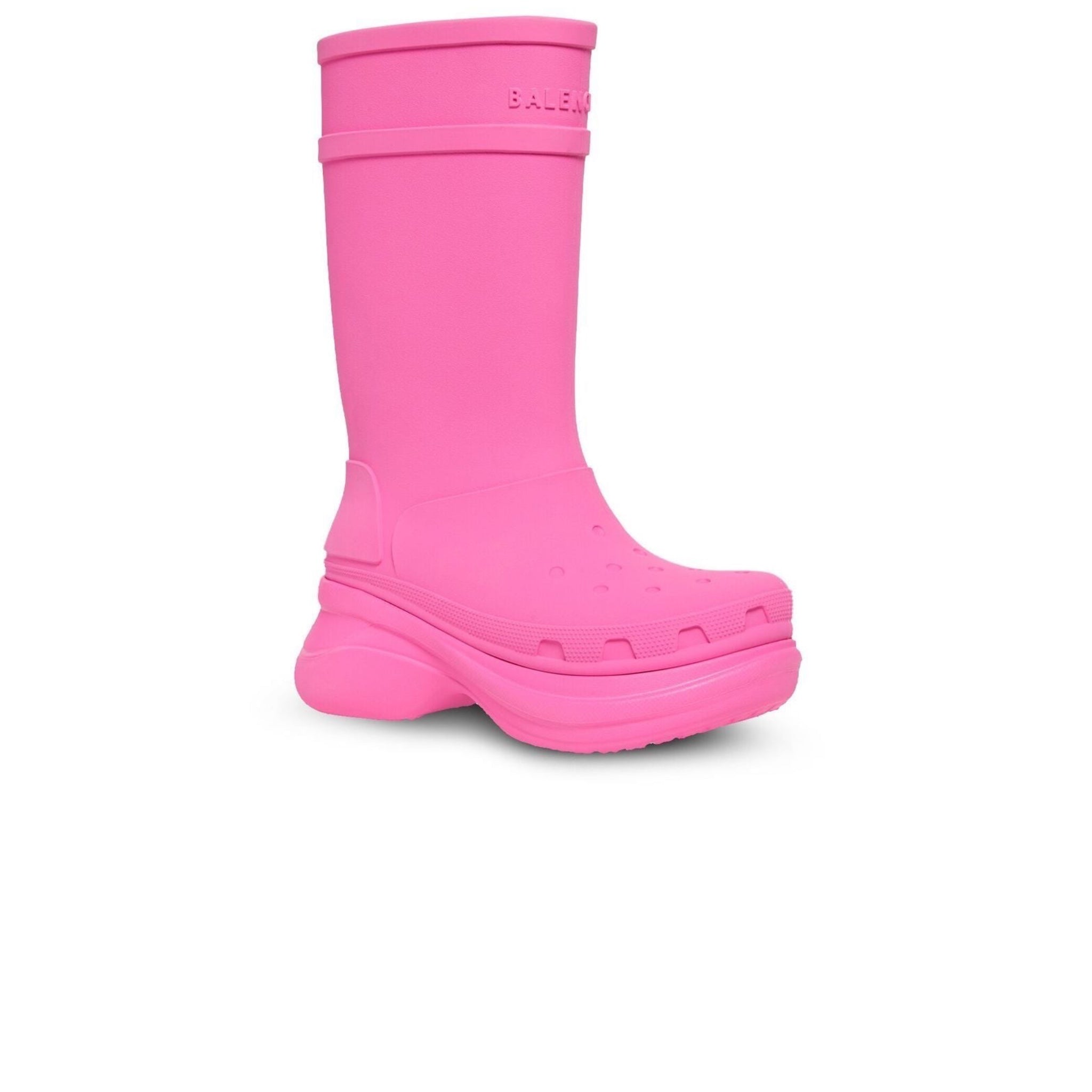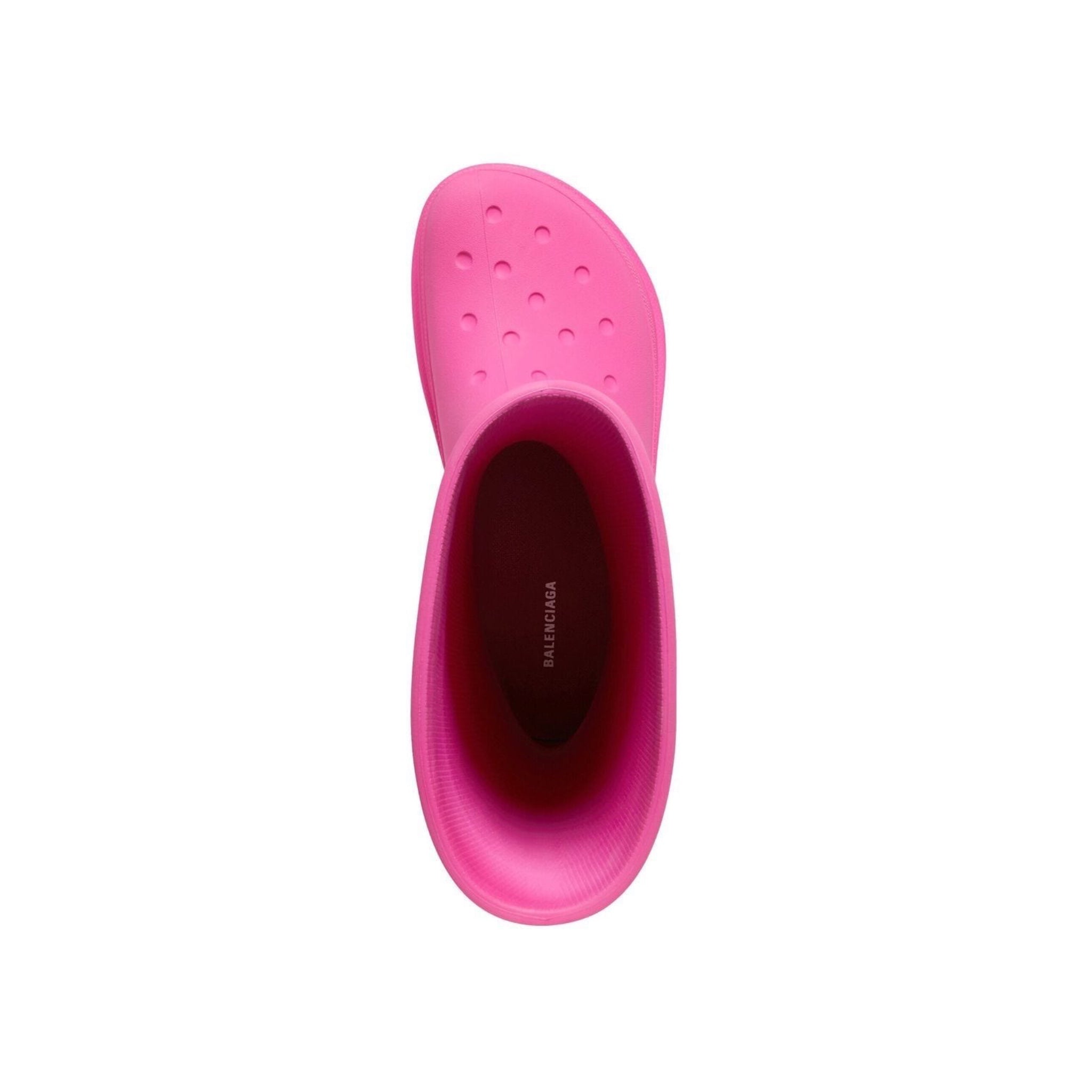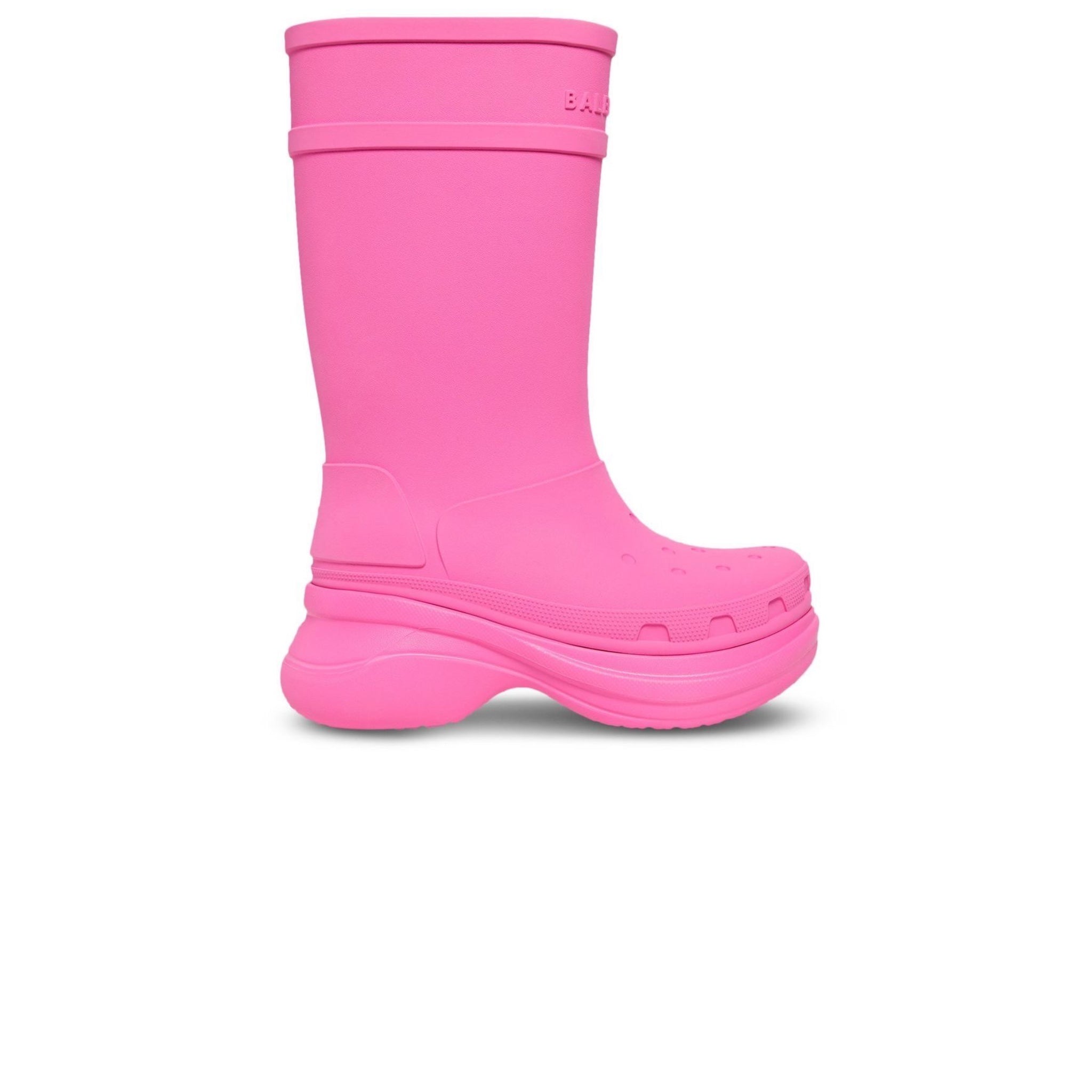 The striking collaboration between Balenciaga and Crocs sees the two brands join forces, with the fashion house bringing unique creativity to match the clogs seller's functional design. Crafted from rubber, these mid-calf boots are characterised by the perforated detailing that defines Crocs' inimitable shoes, for footwear that combines practicality and style.