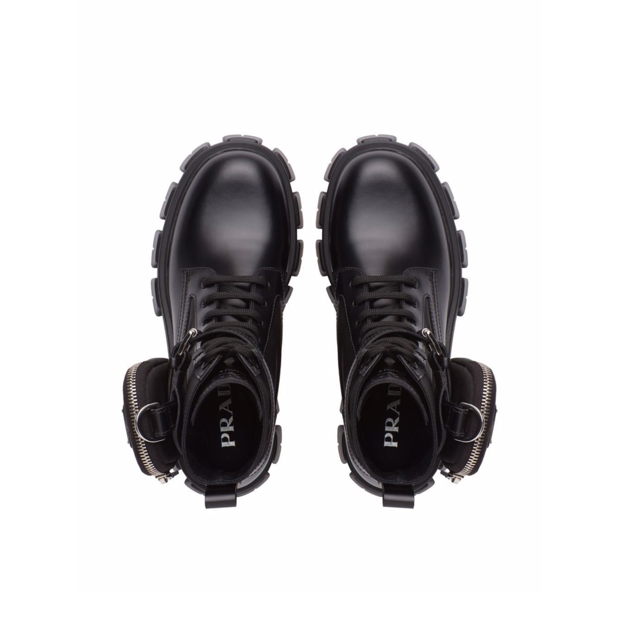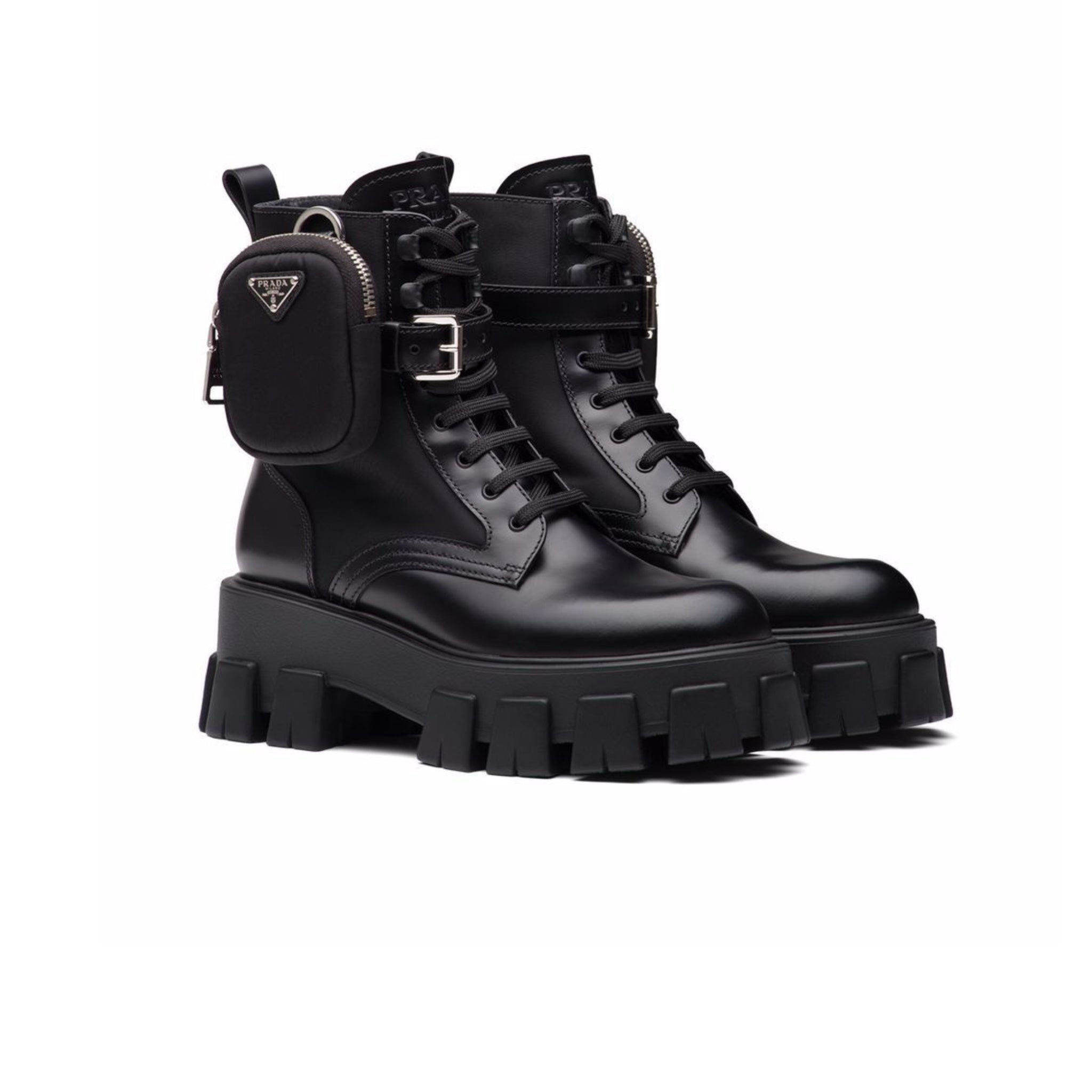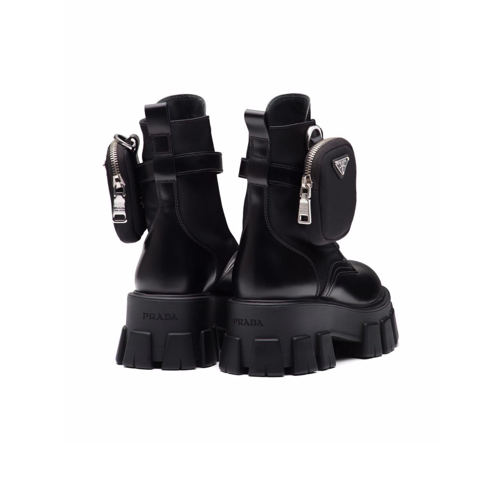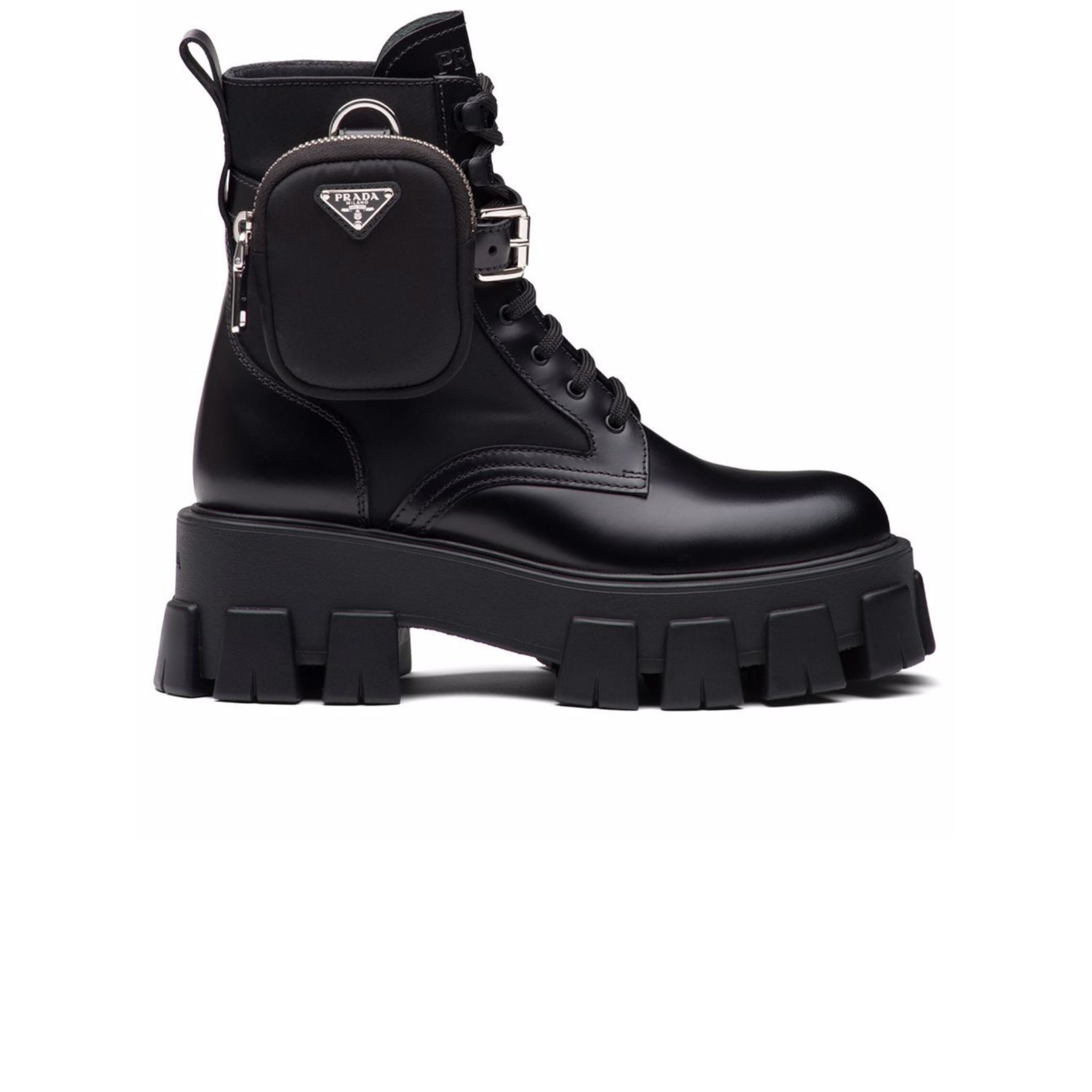 Elevate your footwear collection with the Prada Moonlith Pouch-Detail Ankle Boots. Expertly crafted, these boots feature a sleek silhouette enhanced by a distinctive pouch detail, combining fashion-forward design with practical storage. The ankle height offers versatile styling options, while premium materials ensure durability and comfort. Perfect for those seeking a refined yet edgy statement piece, these boots seamlessly blend innovation with timeless elegance.