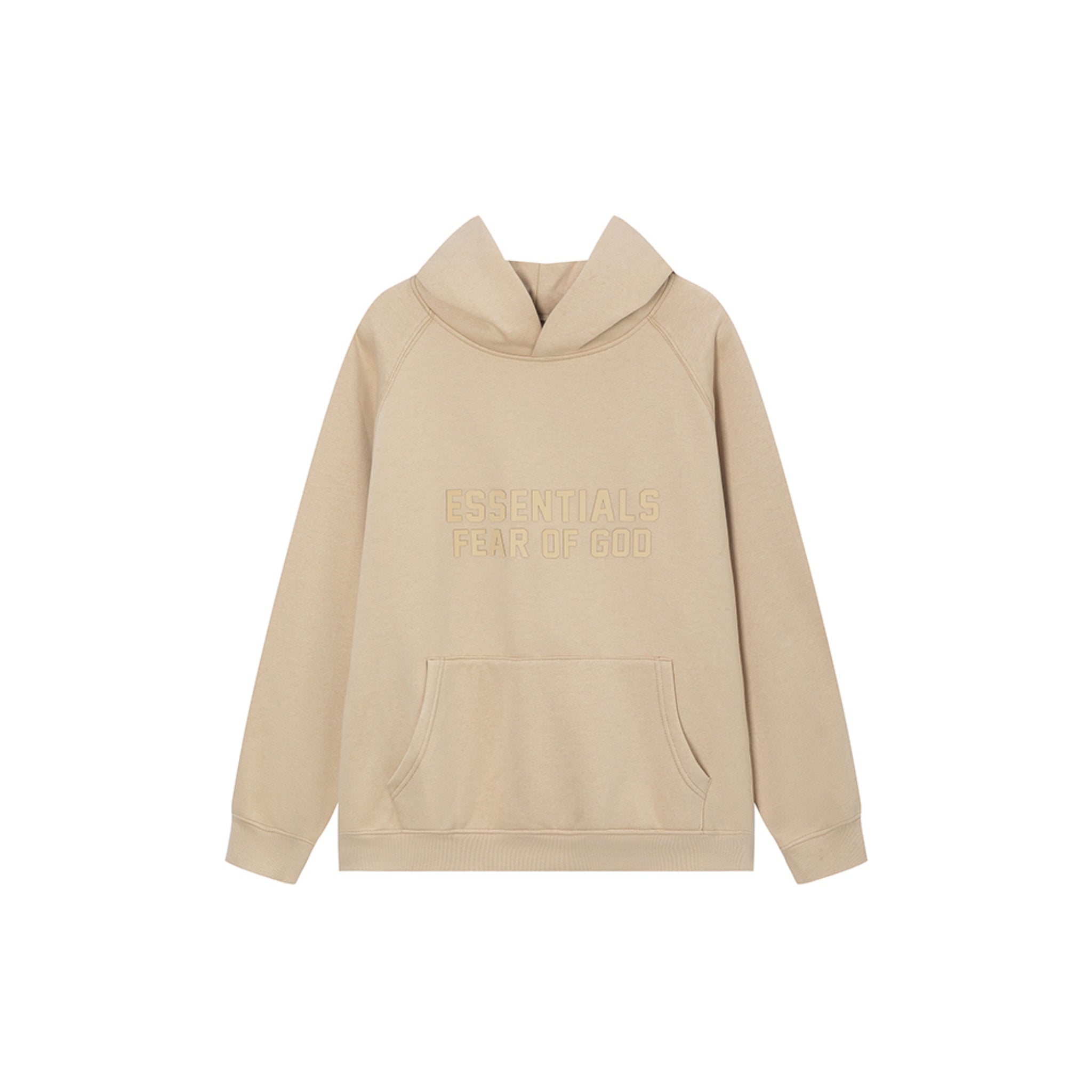 The Fear Of God Essentials Logo-Print Hoodie in beige offers a refined blend of comfort and style. Crafted with premium materials, it features a bold logo print that elevates its minimalist design. This hoodie provides warmth and a relaxed fit, making it an ideal choice for both casual wear and layering in cooler weather. Its distinctive color adds a unique touch to any wardrobe, reflecting contemporary streetwear sophistication.