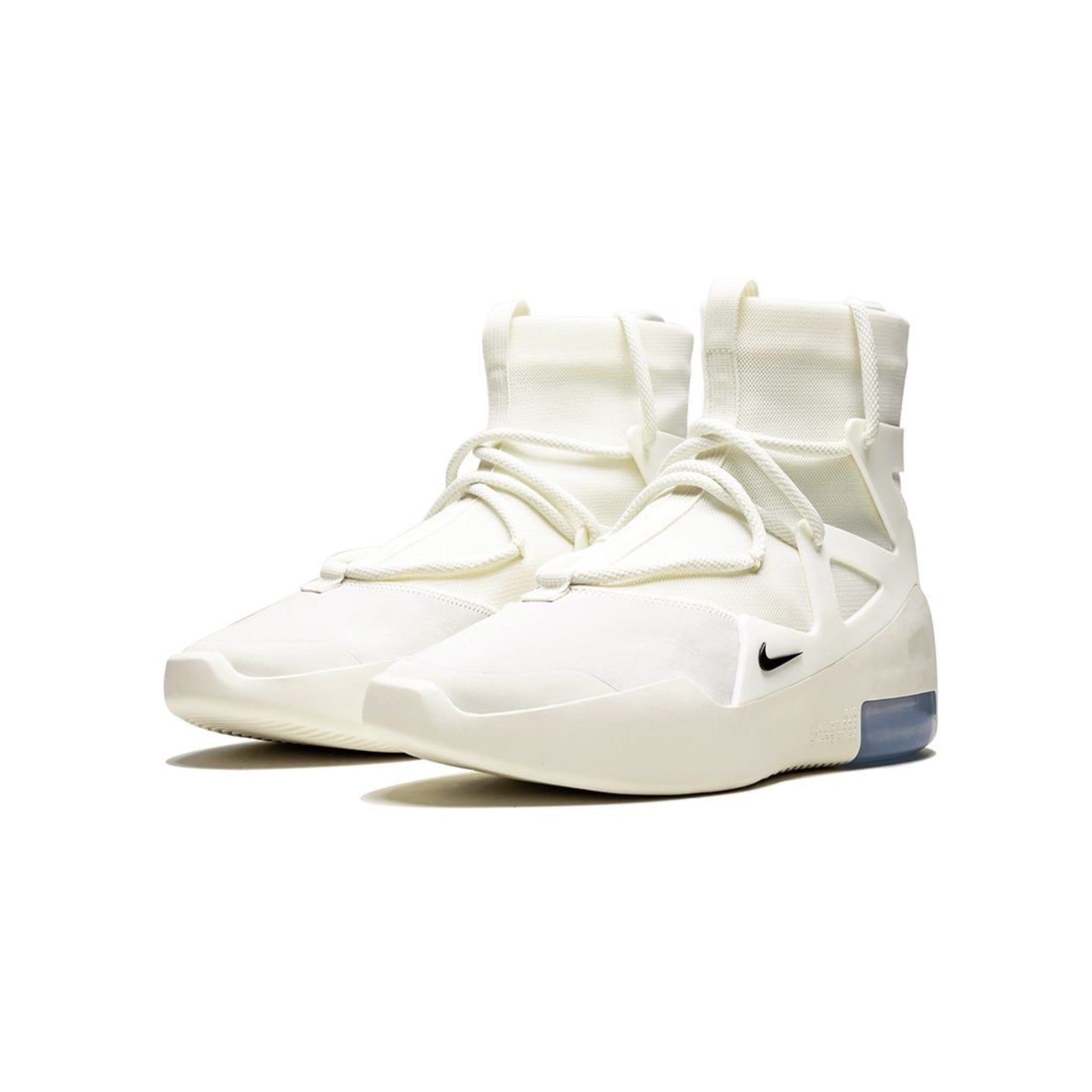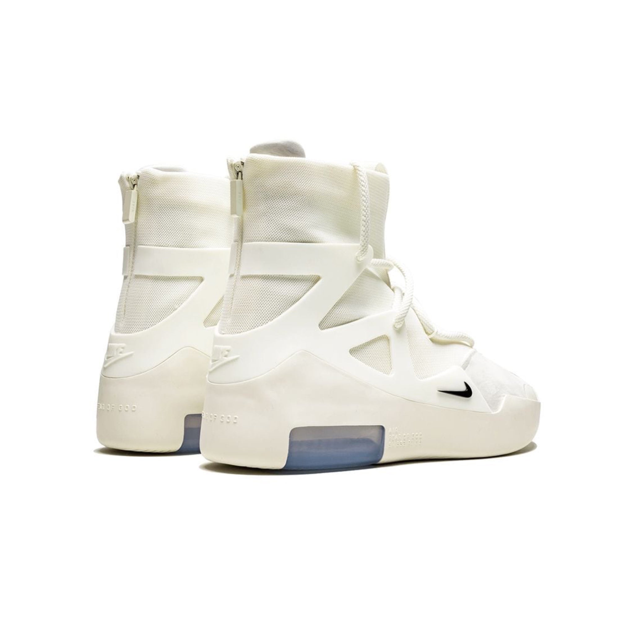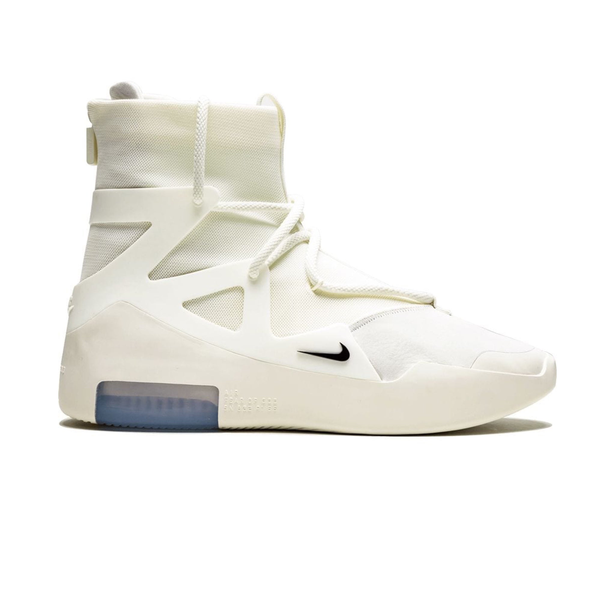 The Nike Air Fear of God 1 “Sail” is an ultra-clean look for Jerry Lorenzo’s high-end silhouette. The shoe that blurs the lines between a basketball performance model and a luxury streetwear sneaker is presented in a clean Sail (cream white) shade across its mesh upper, TPU “cage” support system, and sculpted midsole. Meanwhile, the toe piece contrasts slightly in light grey suede and the mini Swoosh branding stands out in black. The clear blue tint for the window in the heel that reveals the large Zoom Air unit completes the look. The Nike Air Fear of God 1 “Sail” released on June 8, 2019.