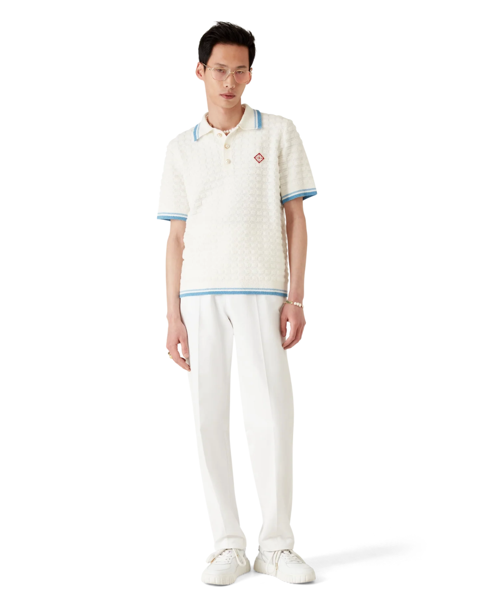 The Casablanca Cotton Boucle Polo Shirt combines refined craftsmanship with premium cotton boucle fabric, offering a textured, breathable feel ideal for sophisticated casual wear. Its tailored fit ensures a polished silhouette, making it a versatile addition to any expert wardrobe seeking both comfort and style.