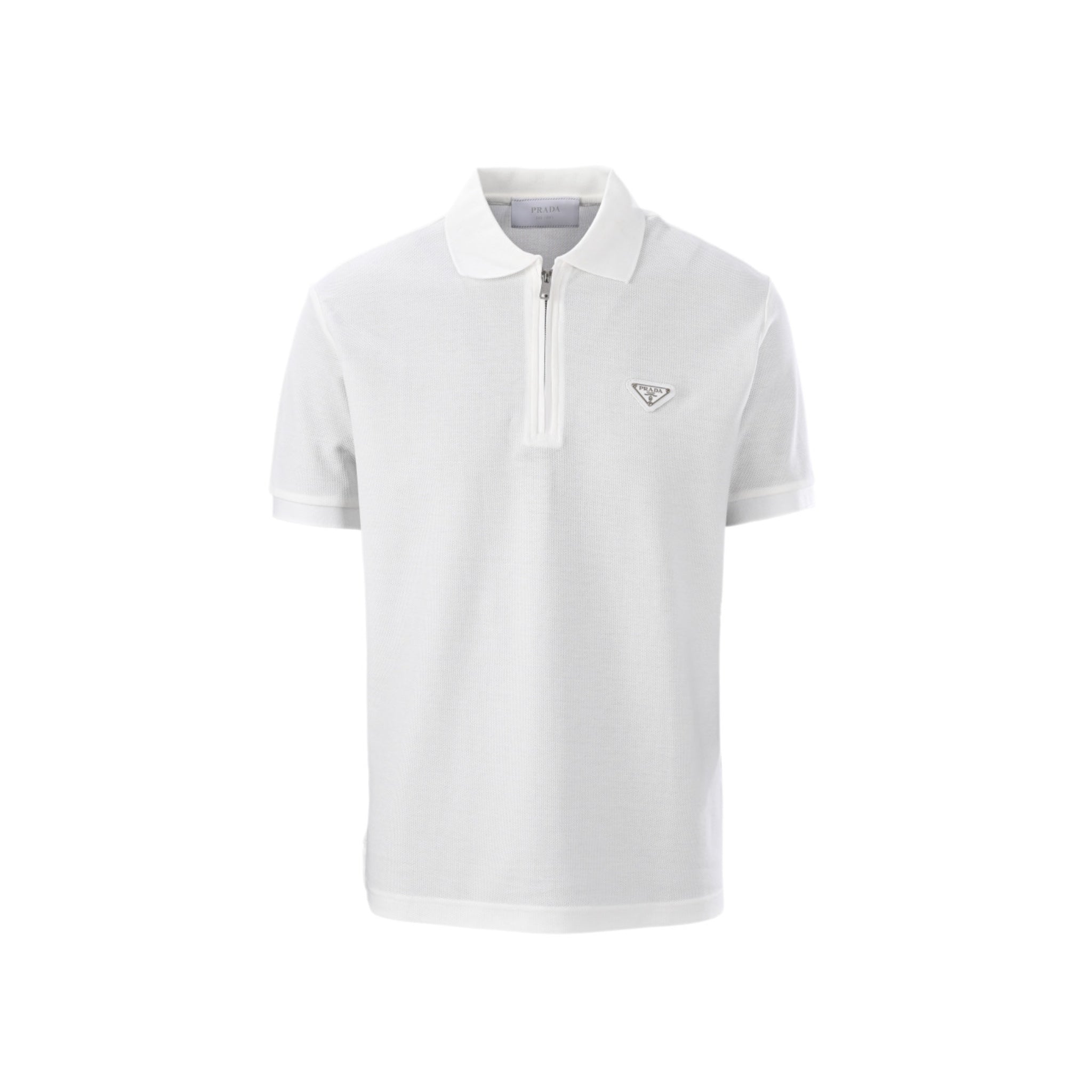 The Prada Triangle-Logo Cotton Polo Shirt showcases minimalist elegance with its signature triangular logo, embodying the brand’s commitment to refined design. Made from high-quality cotton, this polo ensures breathability and comfort, ideal for sophisticated casual wear. Its tailored fit and durable fabric make it a versatile addition to any wardrobe, blending luxury with everyday practicality.