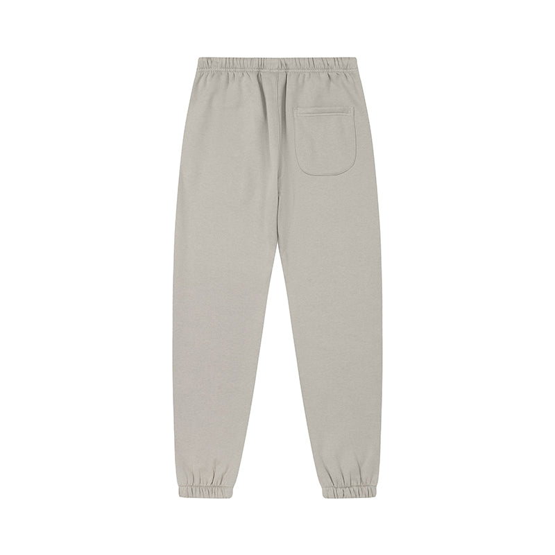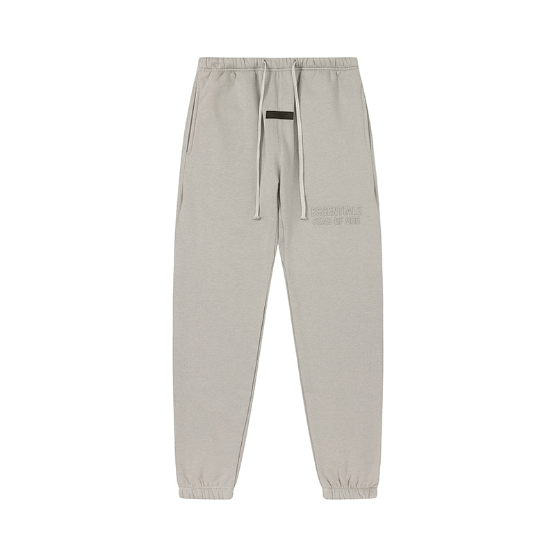 logo-print tracksuits from FEAR OF GOD ESSENTIALS featuring ash grey, cotton blend, logo print at the leg, logo patch to the front, elasticated drawstring waistband, straight leg, elasticated ankles and two side slit pockets.