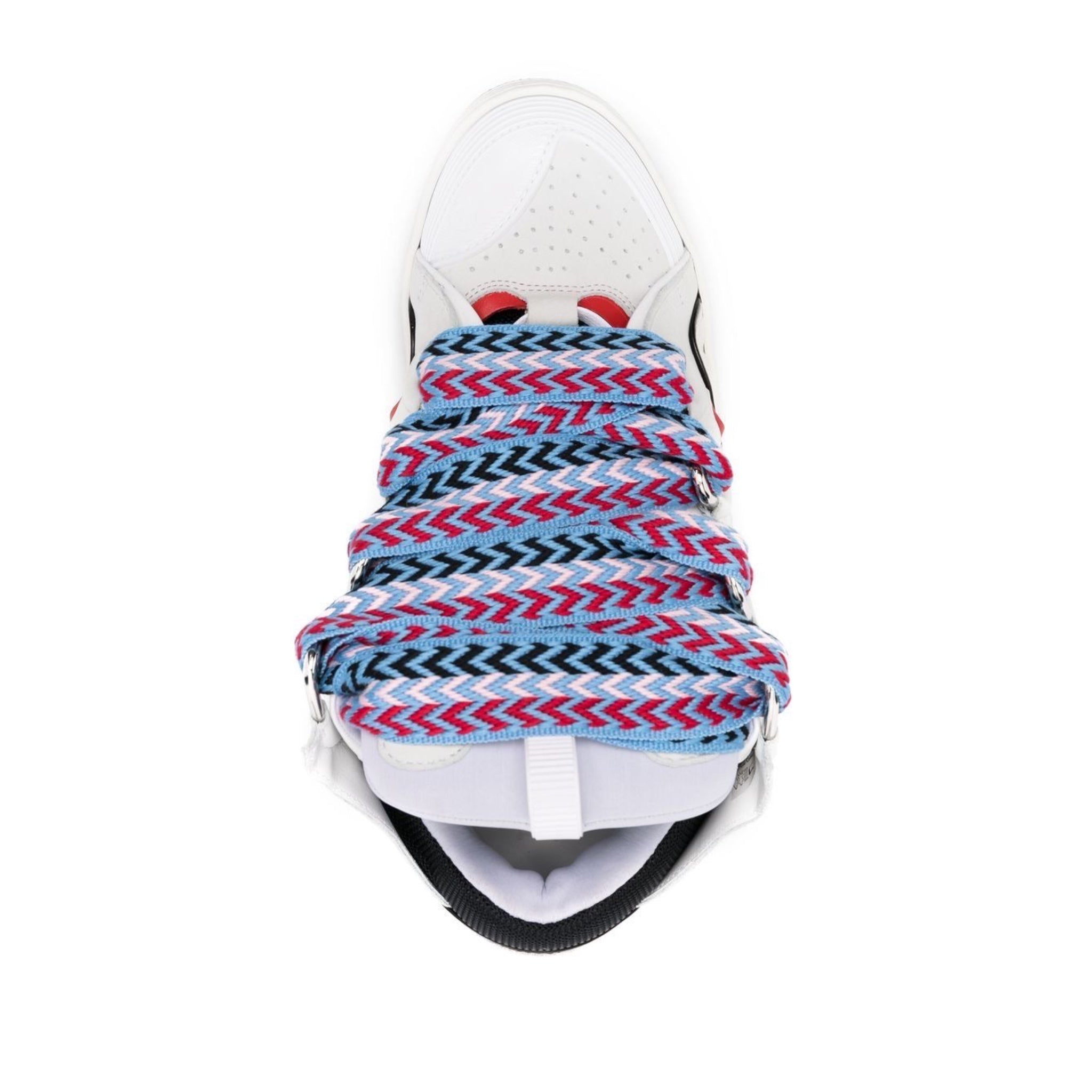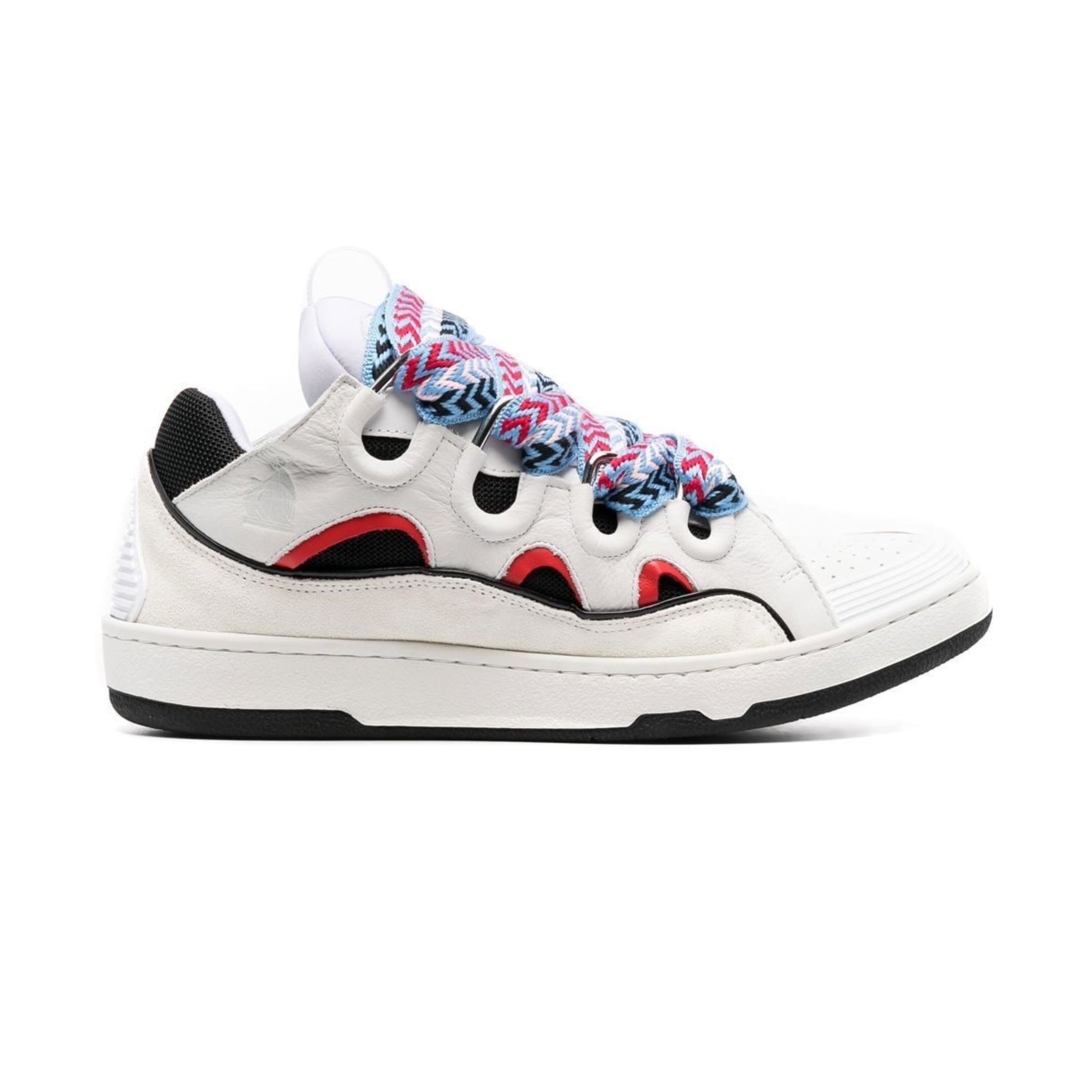 Defined by oversized zigzag patterned laces, these LANVIN Curb sneakers showcase a 90s-inspired skater silhouette. The maximalist design is complete with a flat rubber sole and branded signature at the tongue.