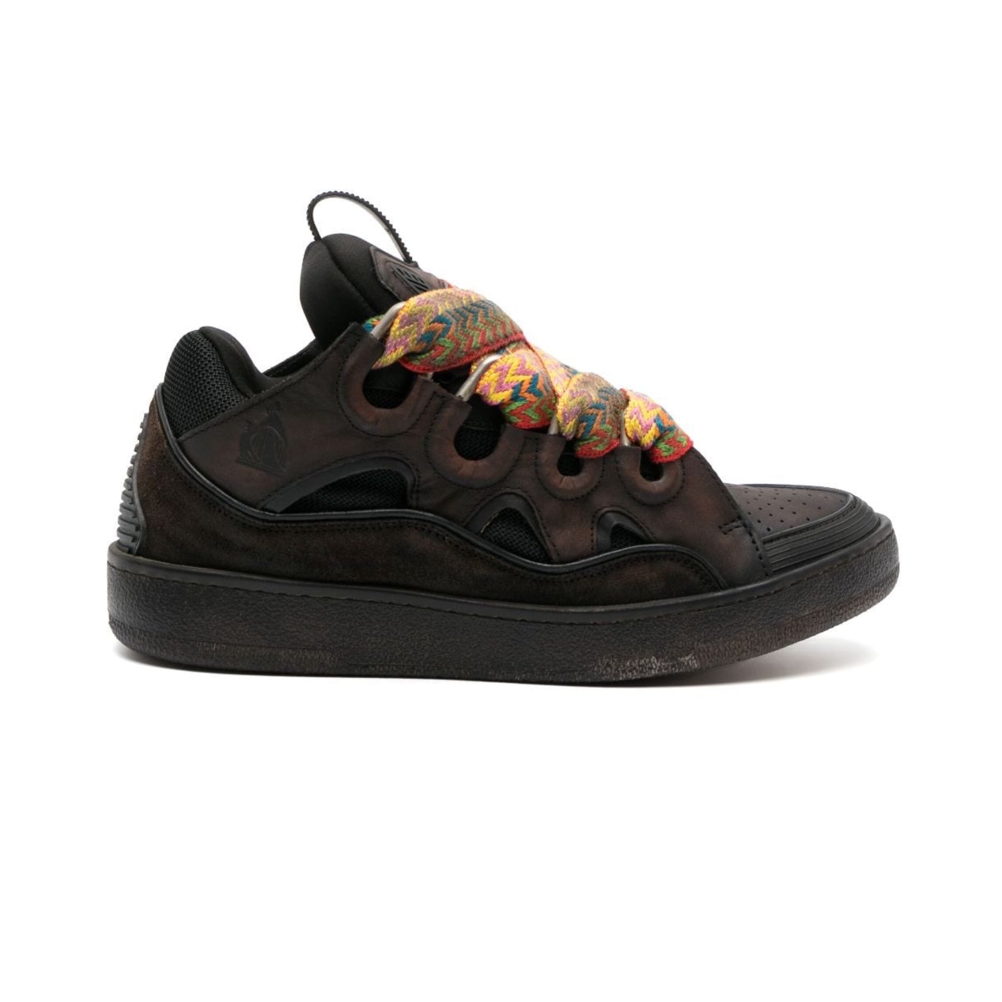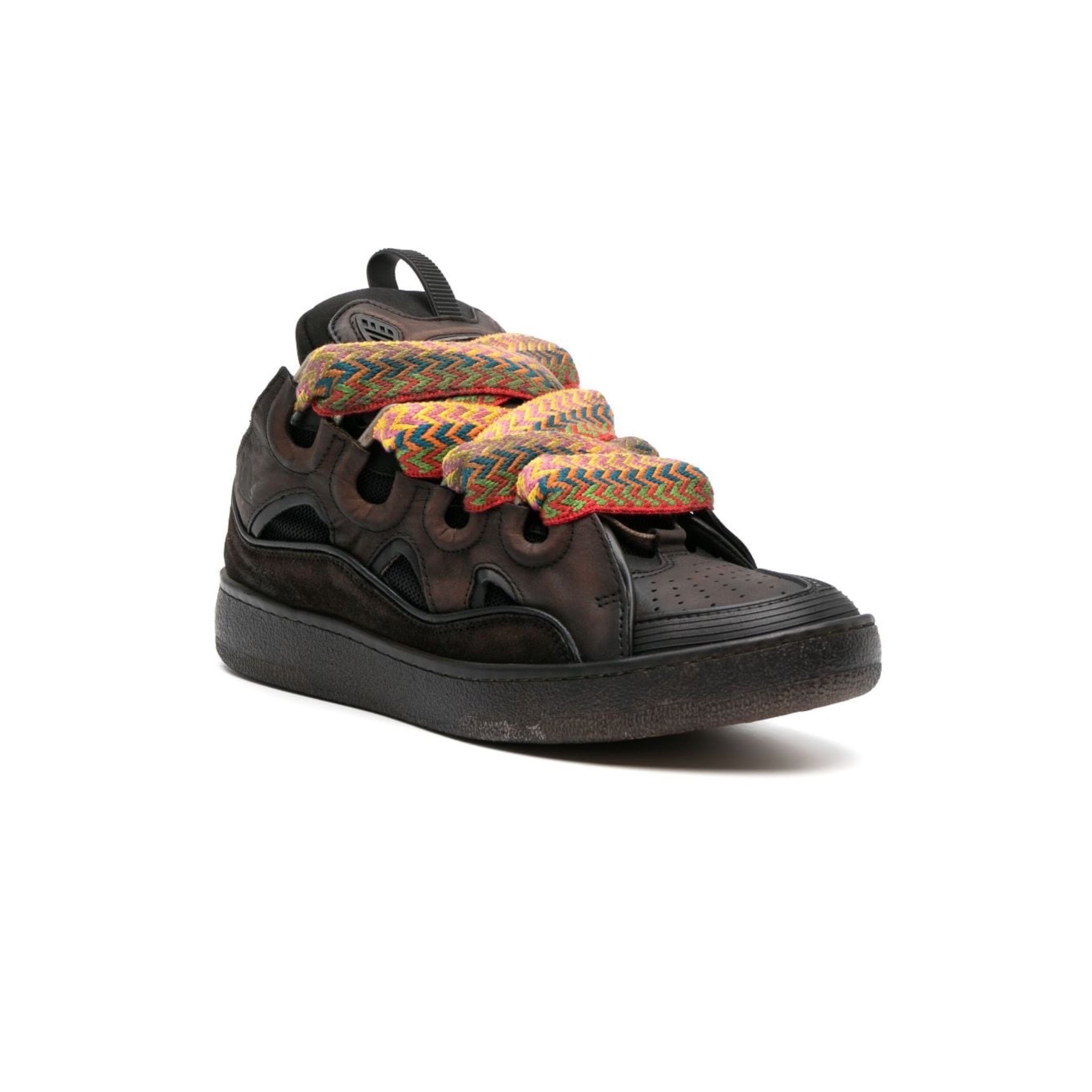 Inspired by '90s footwear, Lanvin's Curb sneakers are a throwback to the decade's exaggerated dimensions. They're crafted from panels of leather, suede and mesh and fitted with style-defining wide herringbone laces secured by oversized silver-tone eyelets. These ones come in a coffee-brown hue and are stamped with logo detailing at the side and tongue.