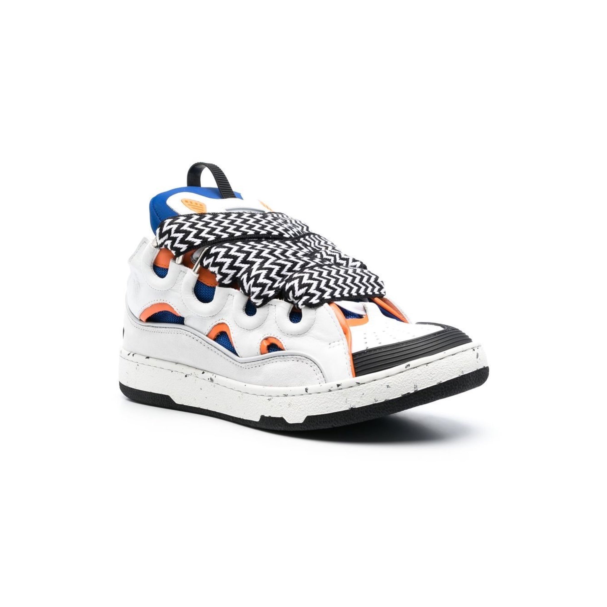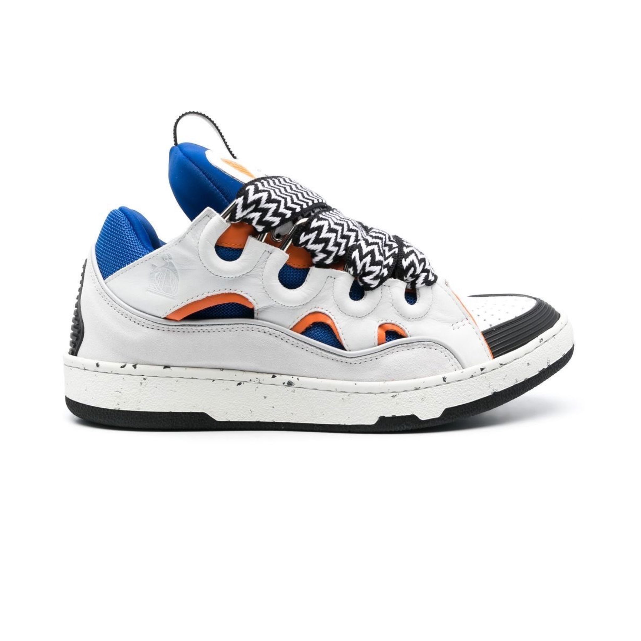 Curb low-top sneakers from Lanvin featuring white/multicolour, calf suede, calf leather, embossed logo to the side, round toe, panelled design, front lace-up fastening and flat rubber sole.Highlights