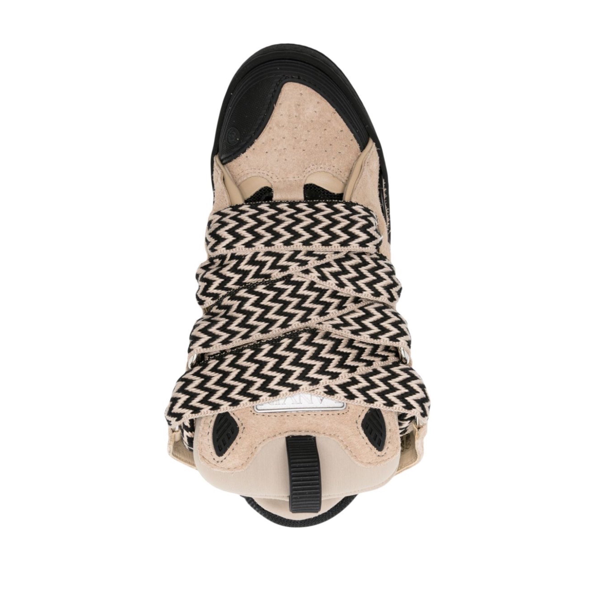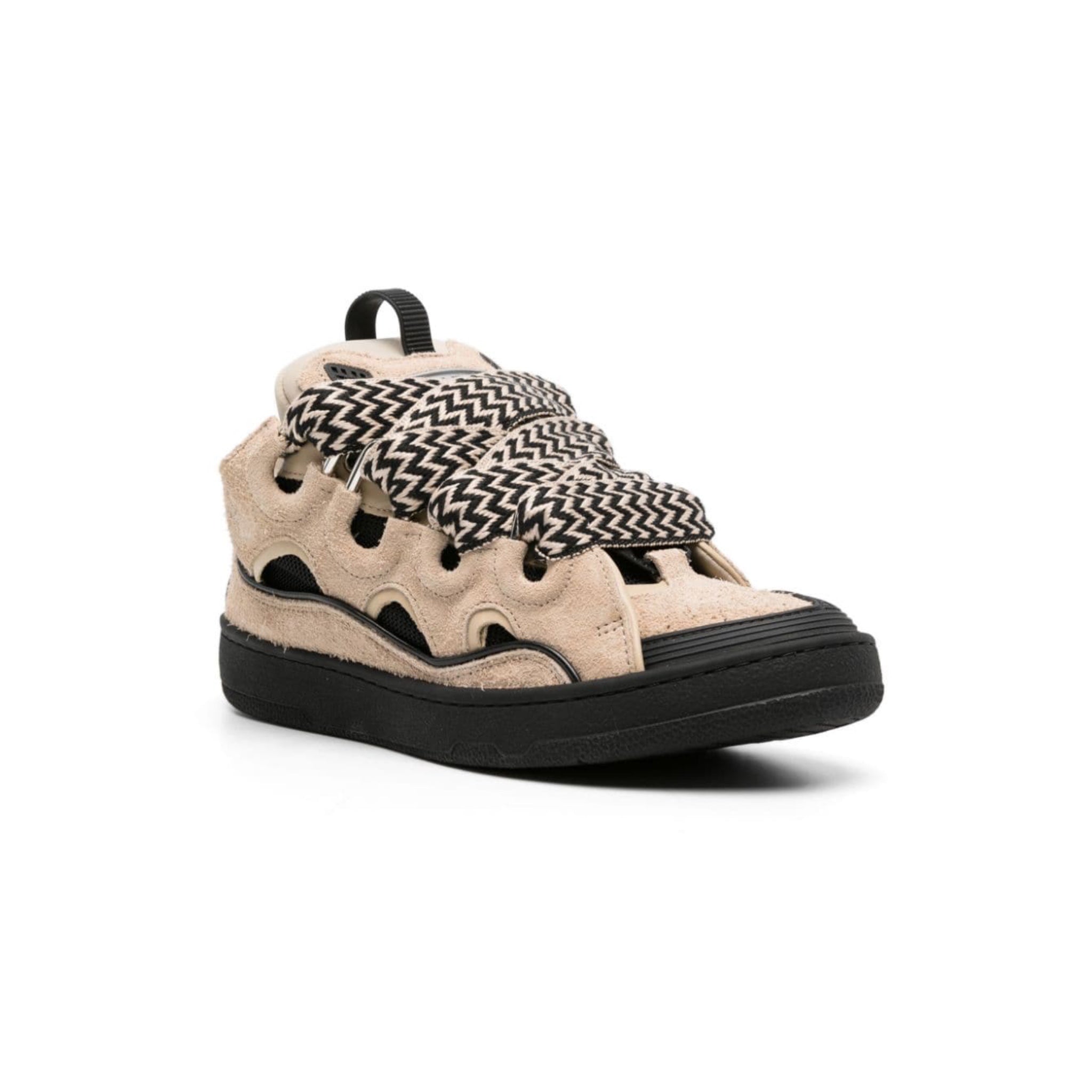 Inspired by the '90s, these Lanvin sneakers are a throwback to the decade's exaggerated proportions. They're panelled from leather and fitted with wide, blue zigzag laces: a signature element from the Curb family of shoes and accessories.