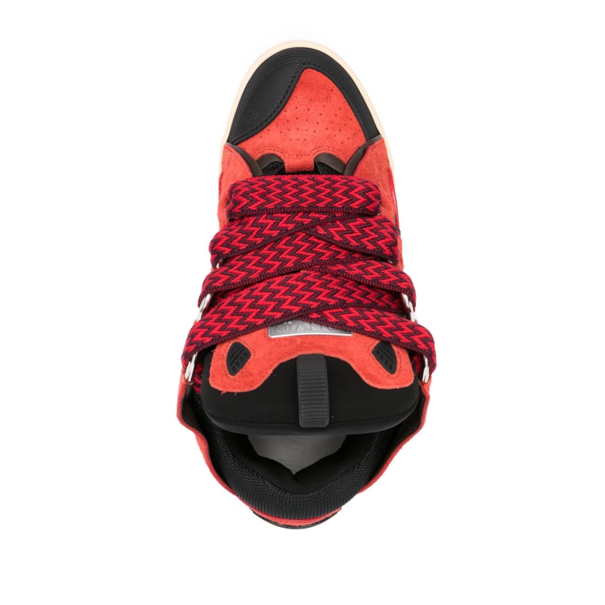 Inspired by the '90s, these Lanvin sneakers are a throwback to the decade's exaggerated proportions. They're panelled from leather and fitted with wide, blue zigzag laces: a signature element from the Curb family of shoes and accessories.