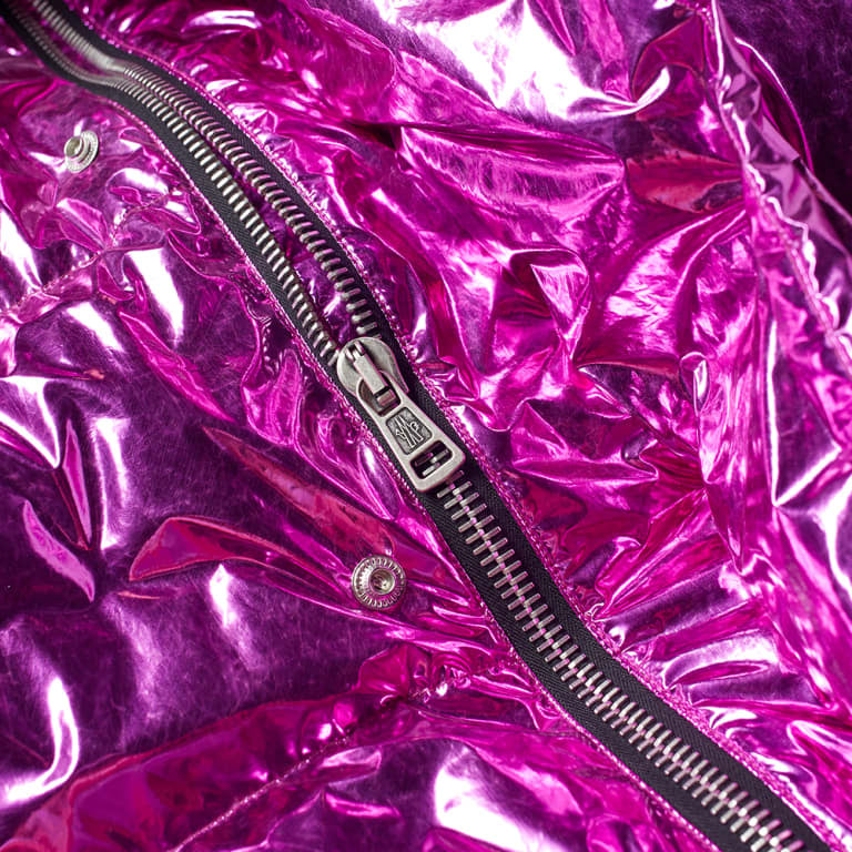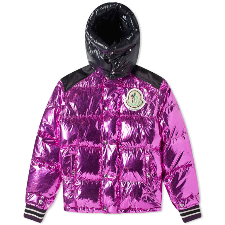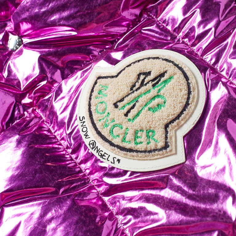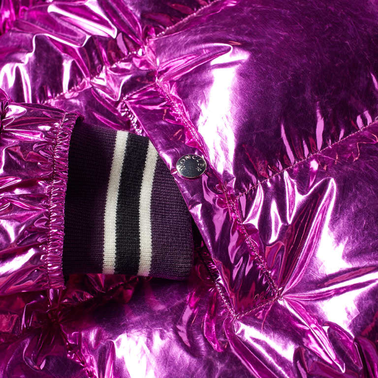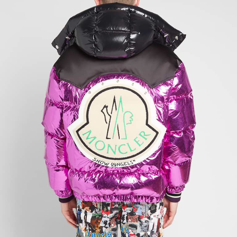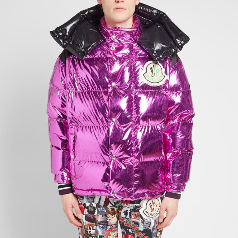 The bold colours and poppable shapes of Jeff Koons’ balloon sculptures informed some of Francesco Ragazzi’s designs for the Palm Angels x Moncler Genuis collaboration – and nowhere is that more evident than in this vibrant fuchsia goose down jacket from the collection. Ragazzi takes a classic Moncler shape and finishes it in mirror-look nylon in a shade of pink so bright it would make a flamingo blush. The coat’s cosy funnel hood is rendered in sleek, chic black while the back is marked with an upsized white leather Moncler patch and a row of silver spike studs that scream about Palm Angels’ punk rock DNA.