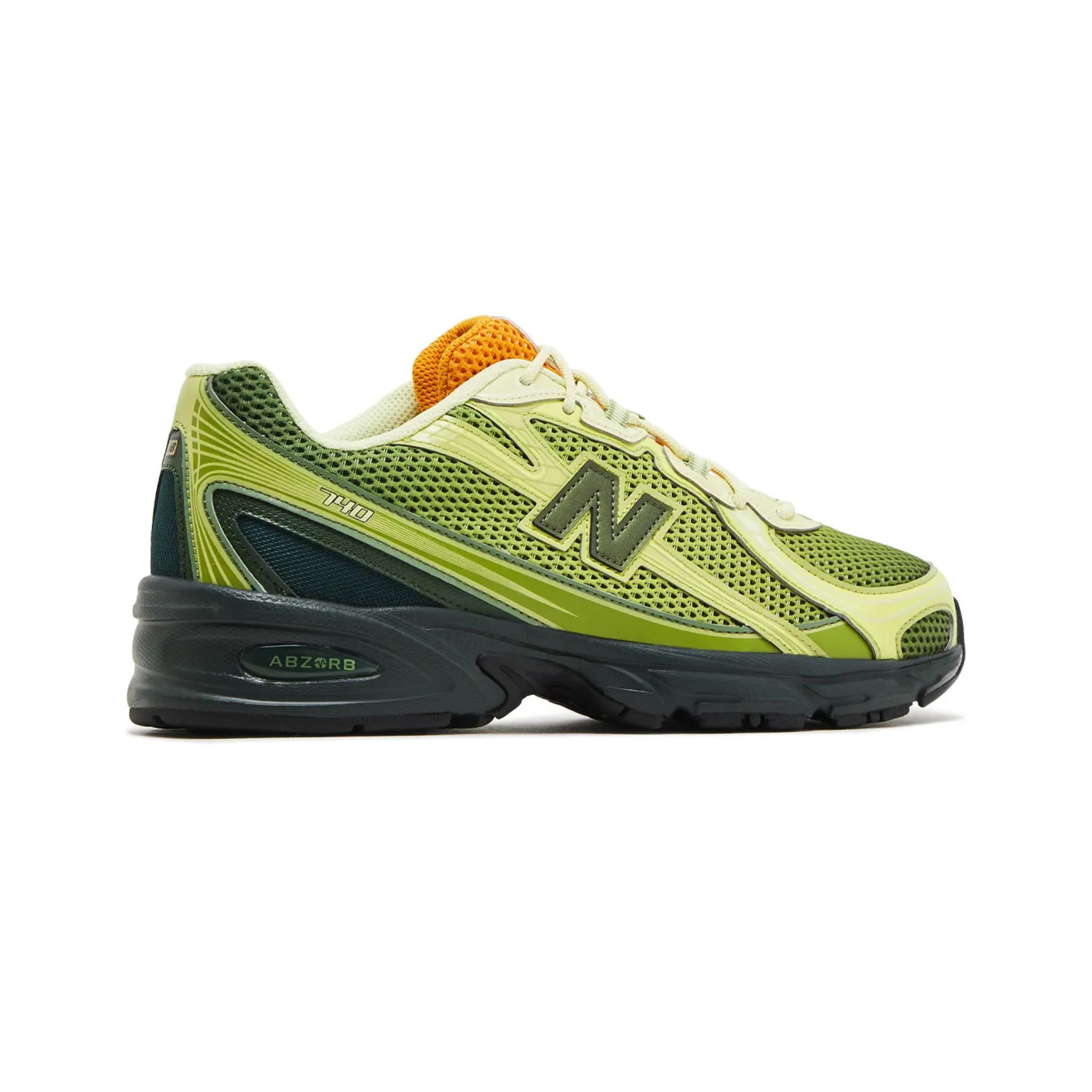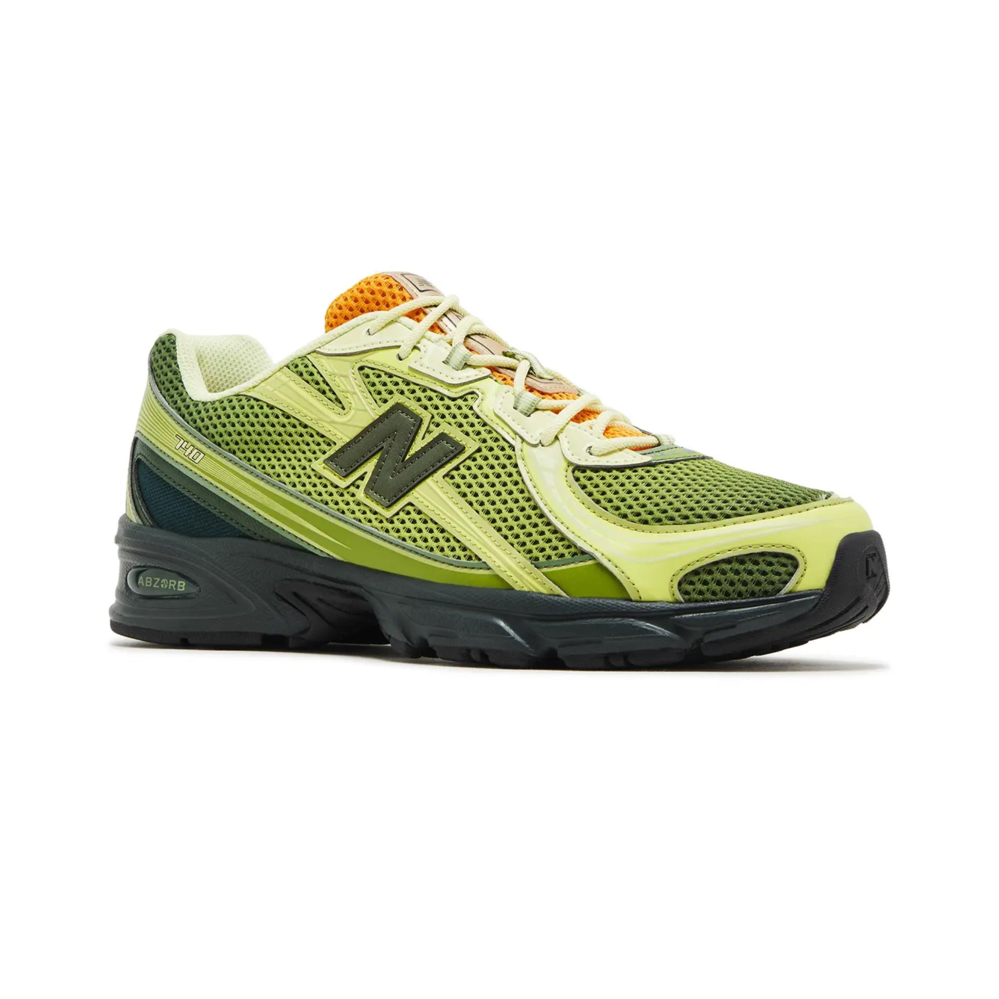 The Concepts x New Balance 740 'Brut' borrows the name from the dry champagne made with grapes grown in the Champagne area of France. Following up Concepts' 'Saignee' 740 collab, these sneakers have a lime green mesh upper with matching synthetic leather overlays and a molded 'N' logo. Contrasting orange mesh is used on the tongue, stamped with both brand logos. A soft, dark emerald ABZORB midsole undergirds the design.