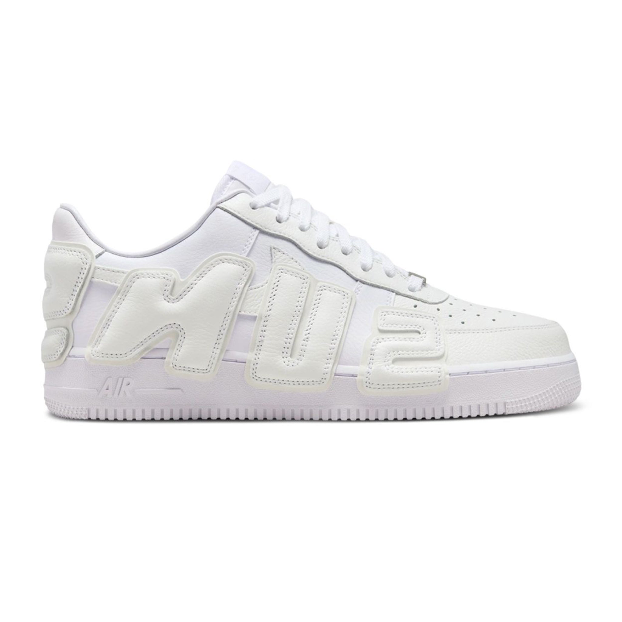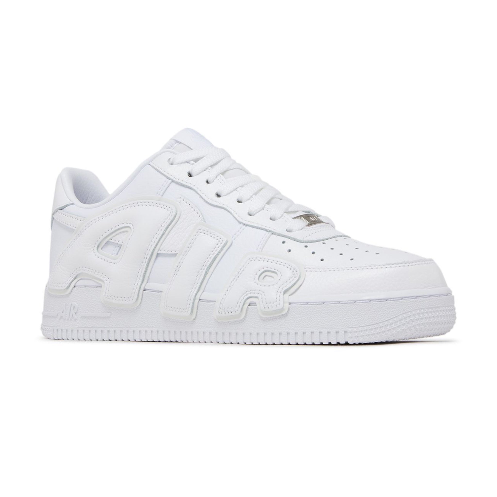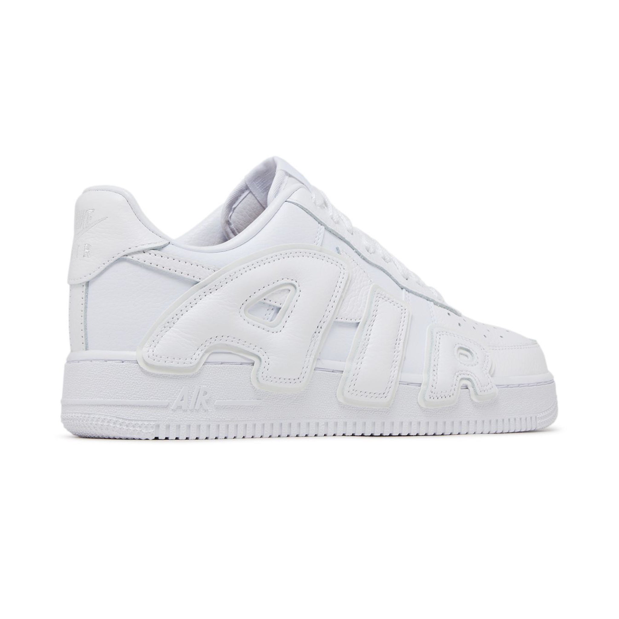 The 2024 version of the Cactus Plant Flea Market x Nike Air Force 1 Low Premium 'White' brings a white tumbled leather upper accented with oversized letters borrowing details from the Air More Uptempo. 'Air' is spelled out on one side of the right shoe, while 'sunshine' wraps around the upper of the left shoe. The midsole contains an Air-sole heel unit for a soft feel underfoot.