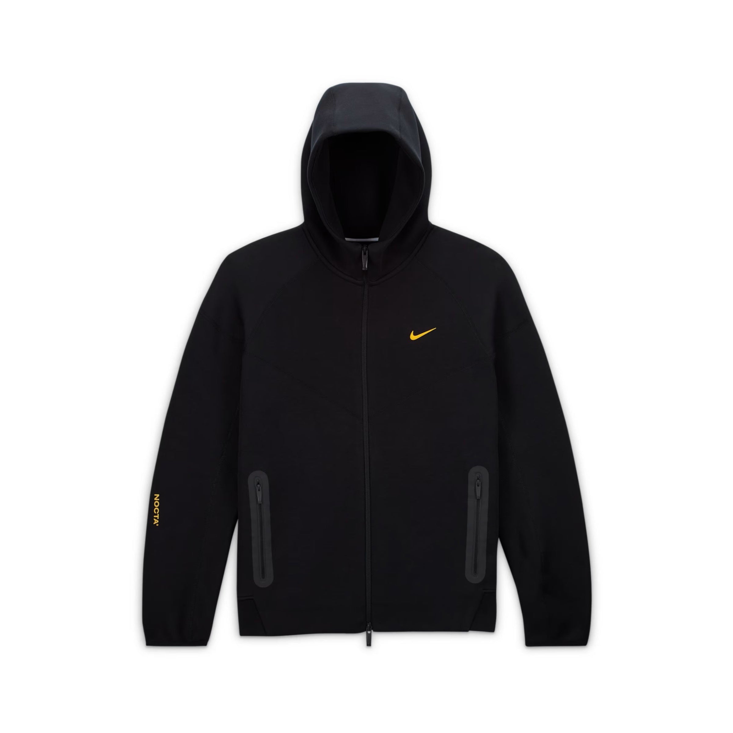 Our NOCTA Tech Fleece Hoodie is a signature piece designed to be worn for layering and for comfort. Distinct features and detailing include, a double layered hood, NOCTA metal moulded zip + puller, clean and premium topstitch windrunner chevron, articulated sleeves, ribbed hem finishes, NOCTA side pockets and NOCTA HD logos.