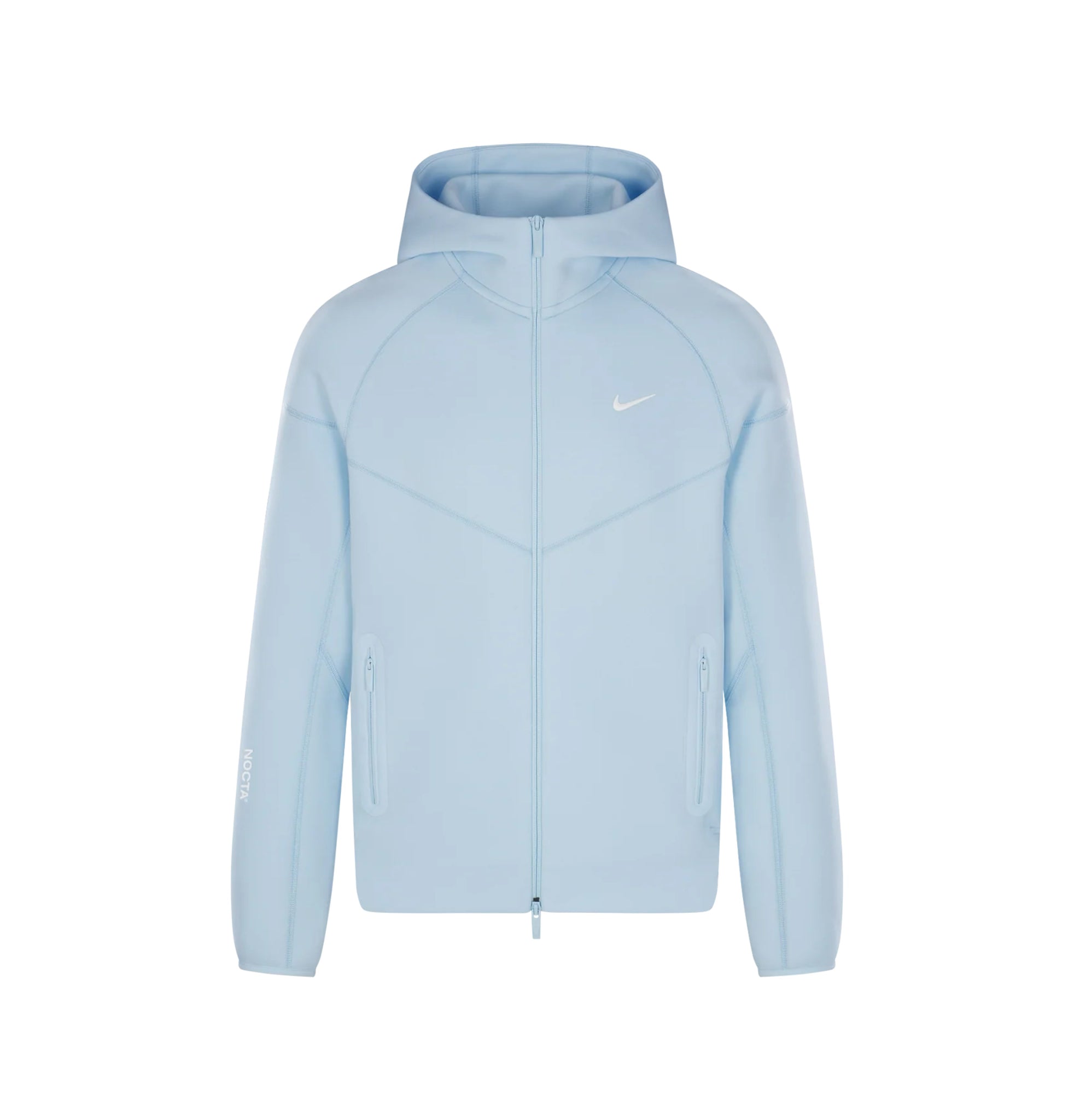 Our NOCTA Tech Fleece Hoodie is a signature piece designed to be worn for layering and for comfort. Distinct features and detailing include, a double layered hood, NOCTA metal moulded zip + puller, clean and premium topstitch windrunner chevron, articulated sleeves, ribbed hem finishes, NOCTA side pockets and NOCTA HD logos.