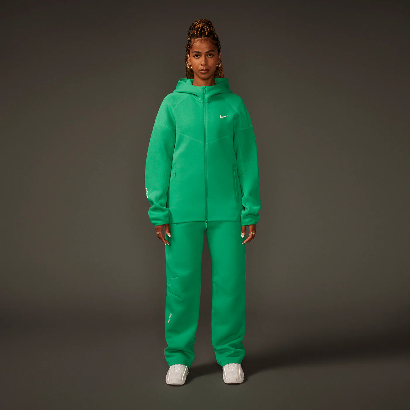 Our NOCTA Tech Fleece Hoodie is a signature piece designed to be worn for layering and for comfort. Distinct features and detailing include, a double layered hood, NOCTA metal moulded zip + puller, clean and premium topstitch windrunner chevron, articulated sleeves, ribbed hem finishes, NOCTA side pockets and NOCTA HD logos.