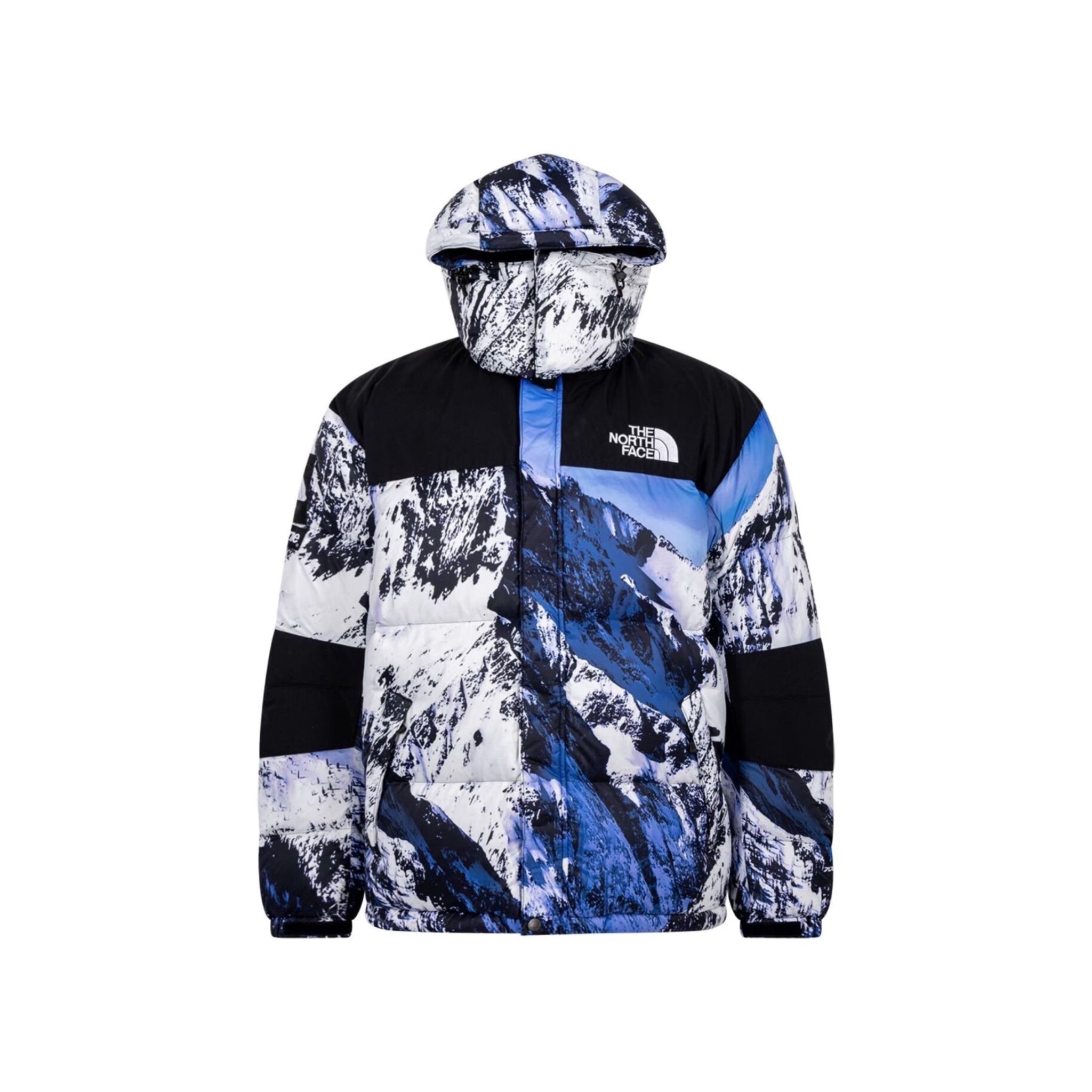 Supreme collaborates with outdoor gear specialists The North Face to deliver this Mountain Baltoro padded jacket. Boasting an all-over graphic print of a snowy mountain scene, it's cut to a padded design and a face-covering hood for crucial protection against the elements.