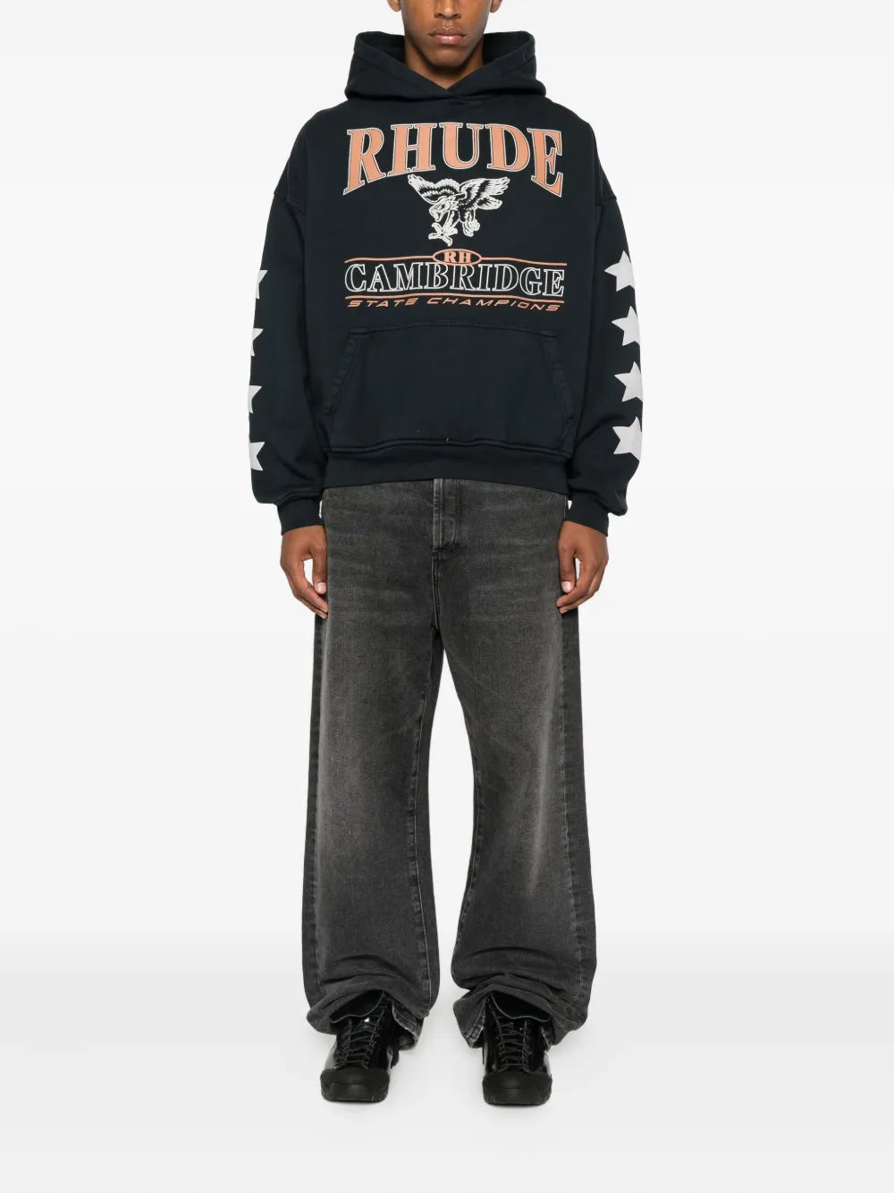 The Rhude 'Cambridge State Champions' Hoodie combines premium craftsmanship with a sleek, contemporary design. Made from high-quality materials, it offers exceptional comfort and durability for everyday wear. Featuring bold branding inspired by championship spirit, this hoodie delivers a refined streetwear aesthetic ideal for those who appreciate both style and substance in their wardrobe.