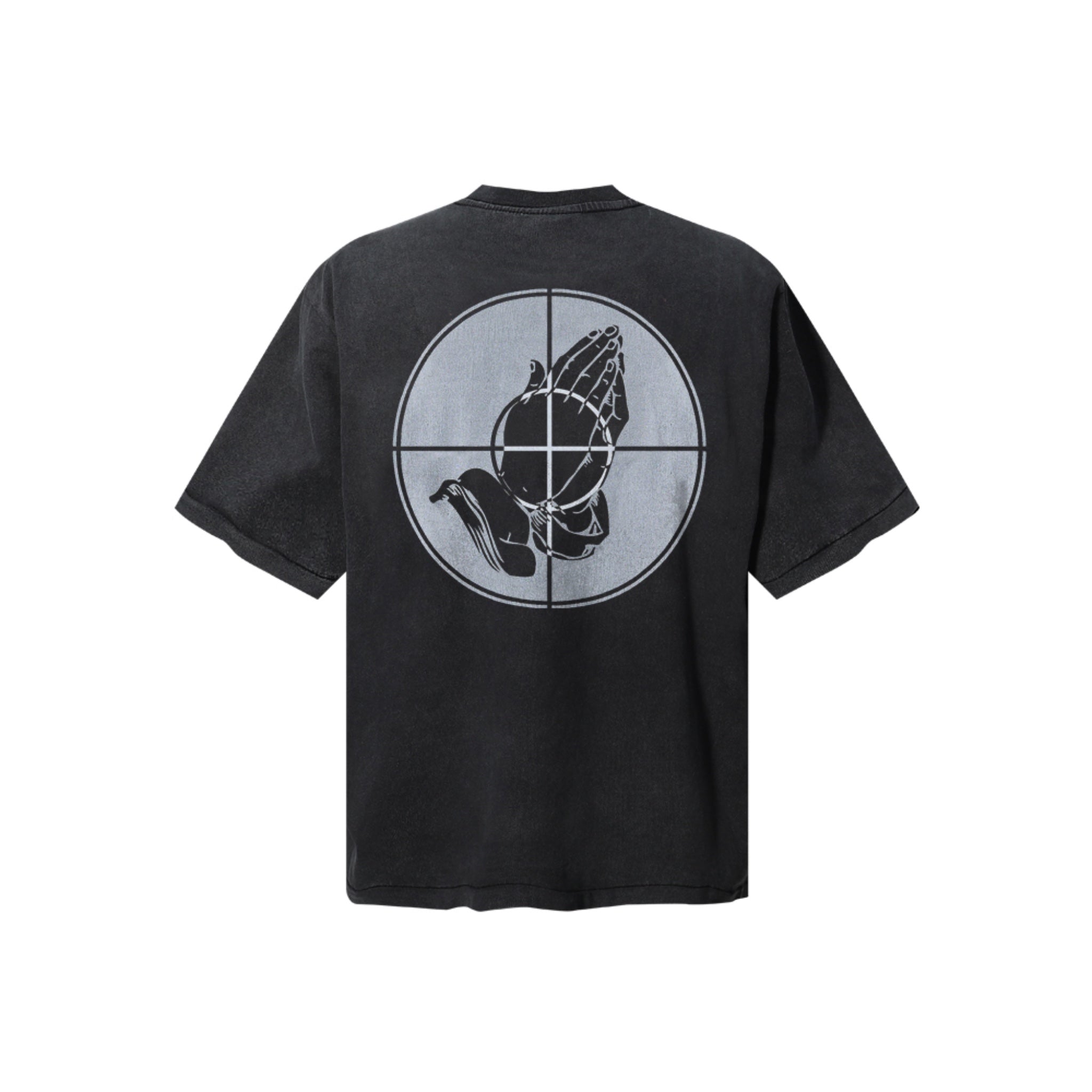 The Saint Mxxxxxx Graphic Print T-shirt showcases a detailed praying hand design, blending spiritual symbolism with contemporary style. Crafted for comfort and durability, this tee offers a refined look suitable for everyday wear or special occasions. Its graphic print adds a meaningful touch, making it a distinctive addition to any wardrobe.