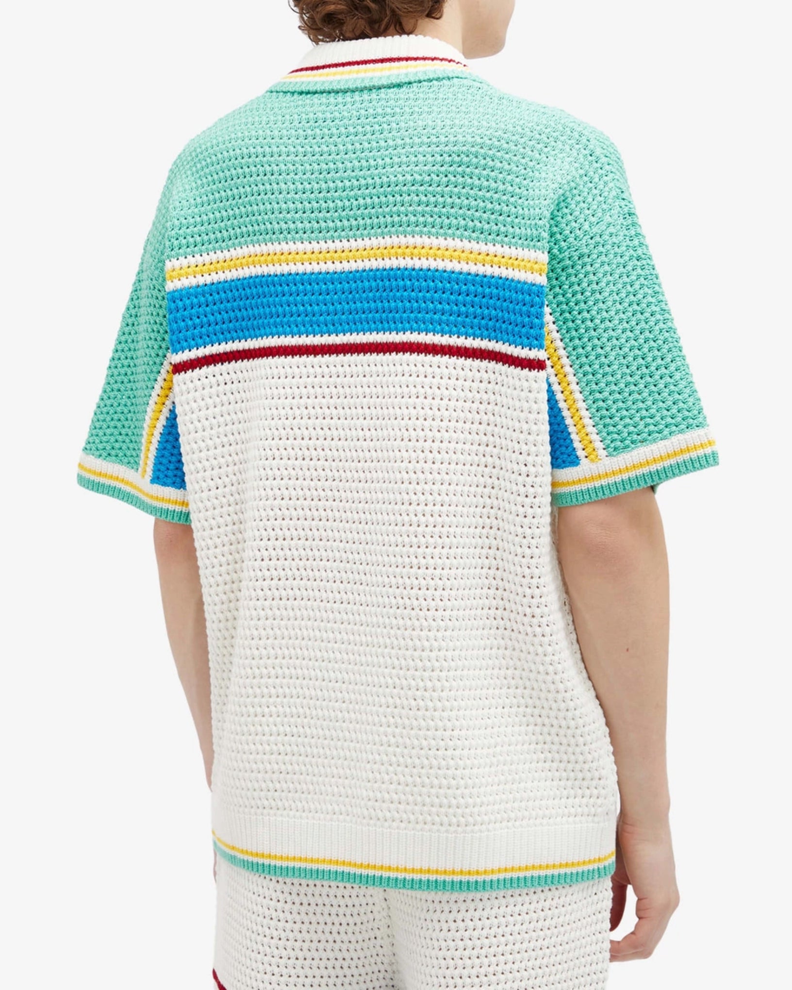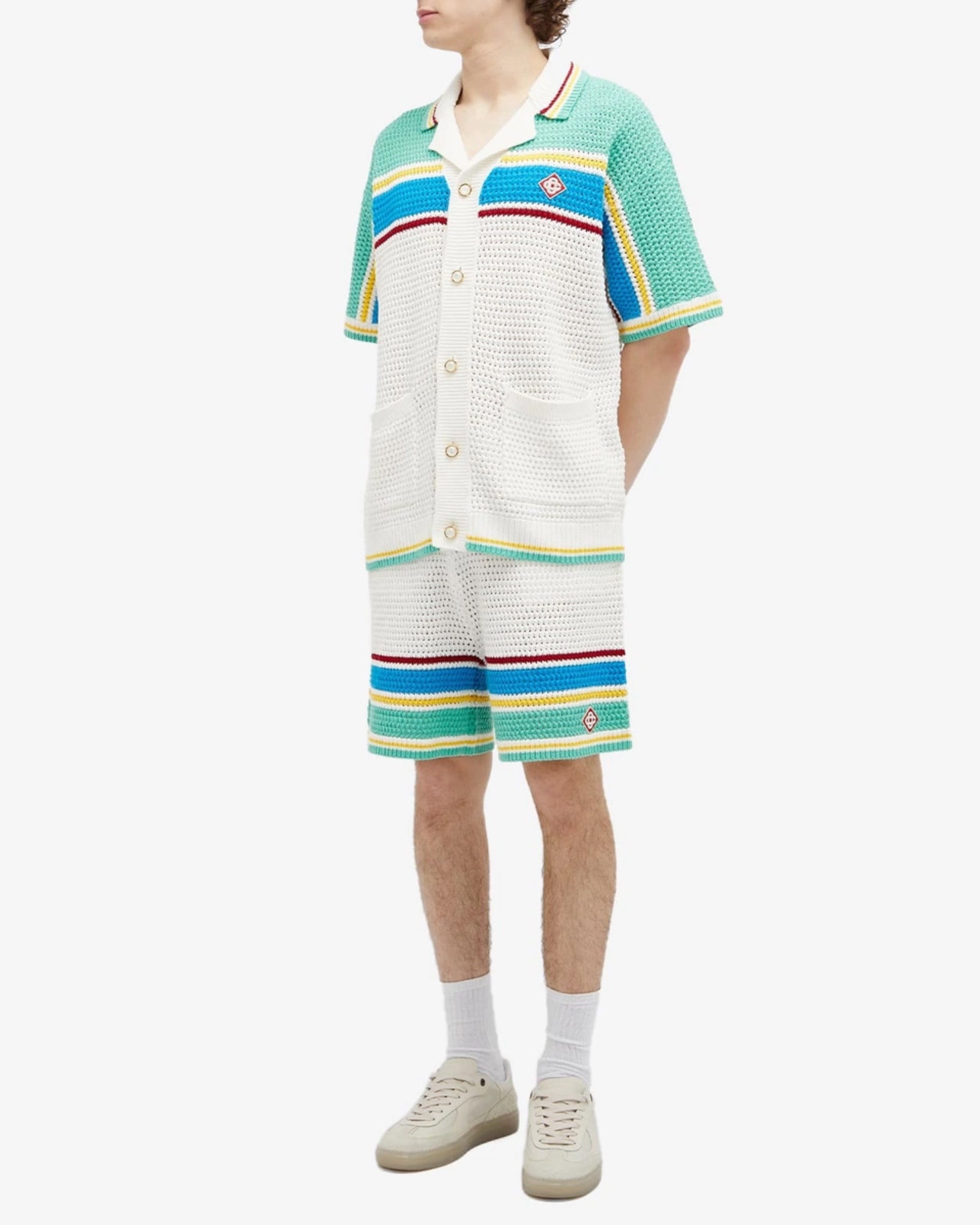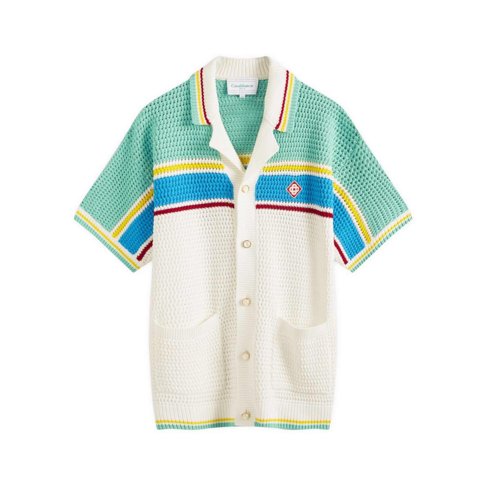 The Casablanca Striped Crochet-Knit Shirt combines artisanal crochet craftsmanship with a modern striped design, offering a refined yet relaxed silhouette. Its breathable knit fabric ensures comfort and durability, making it an ideal choice for layering or standalone wear. This shirt exemplifies expert tailoring and attention to detail, perfect for those seeking a sophisticated, textured addition to their wardrobe.
