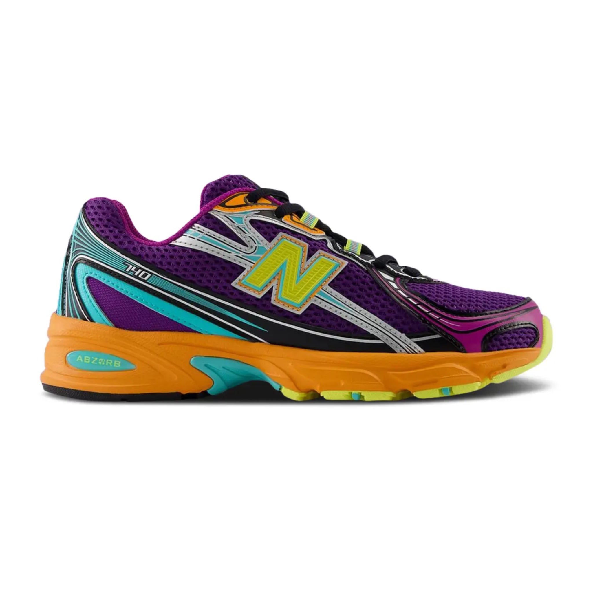 The New Balance 740v2 'Concord Grape Sun Glow' rocks a deep violet mesh upper bolstered with magenta, silver, turquoise and black synthetic leather overlays. A neon yellow 'N' logo adorns the side panel, while an orange ABZORB midsole works closely with a bicolor rubber outsole underfoot.