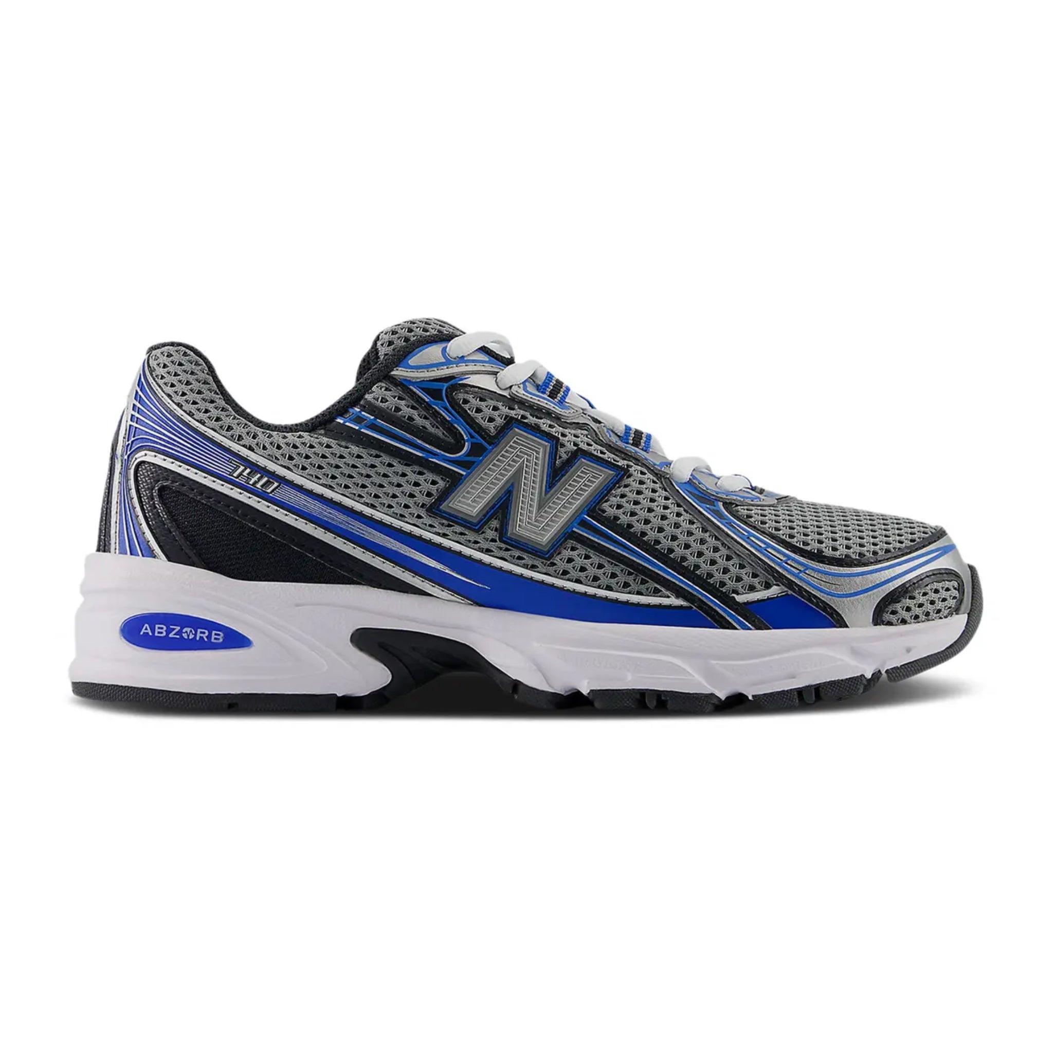 The New Balance 740v2 'Slate Grey Blue Agate' rolls out a grey mesh upper with blue and metallic silver synthetic leather overlays. The signature 'N' logo is present on the side, while a '740' signoff is embossed on the heel. These shoes ride on a full-length ABZORB midsole, anchored by a lugged rubber outsole below.