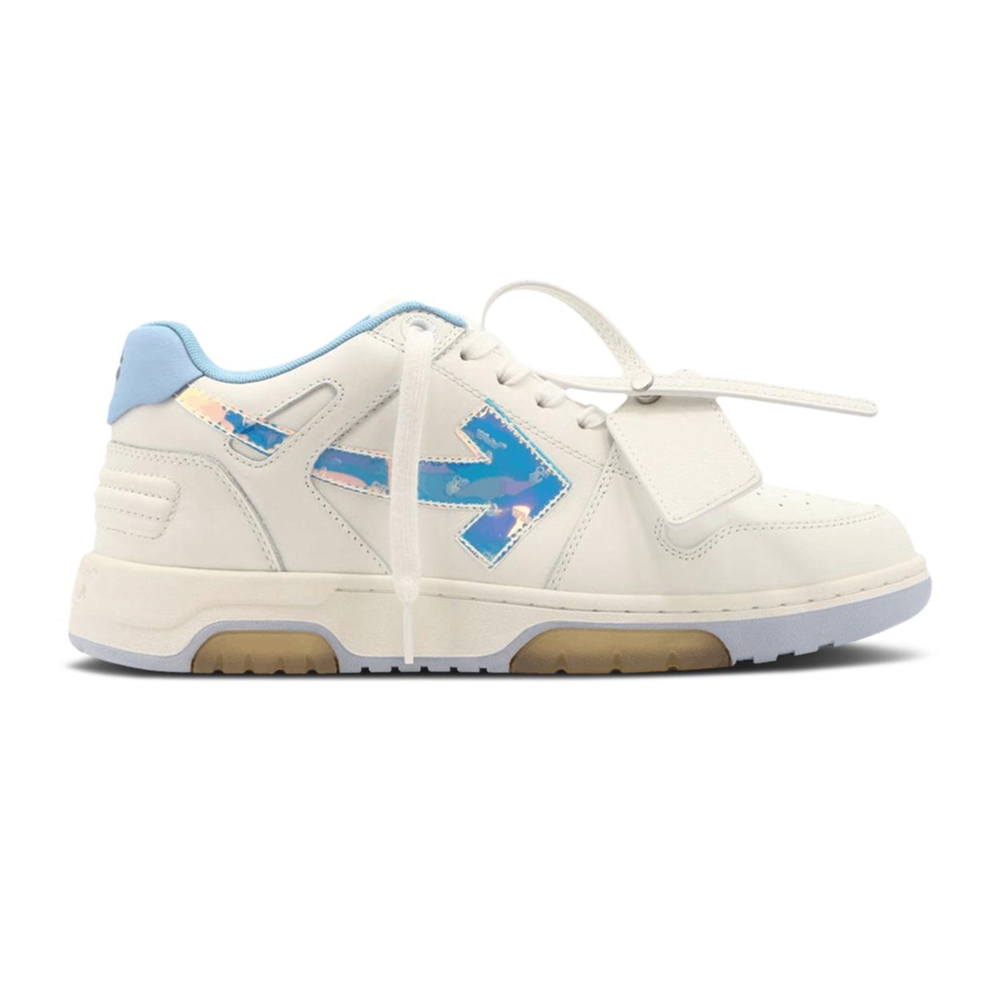 The Off-White™ Out of Office 'White Iridescent' sneaker showcases a sophisticated blend of modern design and subtle iridescent detailing. Its pristine white upper is enhanced with shimmering accents that shift with light, offering a unique visual appeal. Crafted with premium materials, this shoe ensures durability and comfort, making it a refined choice for those seeking both style and performance in everyday footwear.