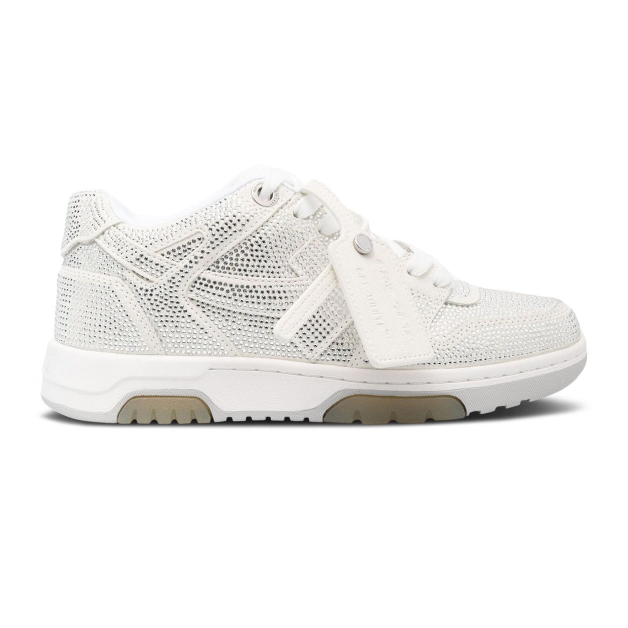 The Off-White™ Wmns Out Of Office 'White Strass' combines contemporary design with refined detailing, featuring a clean white silhouette accented by subtle strass embellishments. Crafted for both style and comfort, this sneaker offers a versatile look suitable for urban environments and casual outings. Its premium materials ensure durability while maintaining a lightweight feel, making it an ideal choice for those seeking a sophisticated yet functional footwear option.