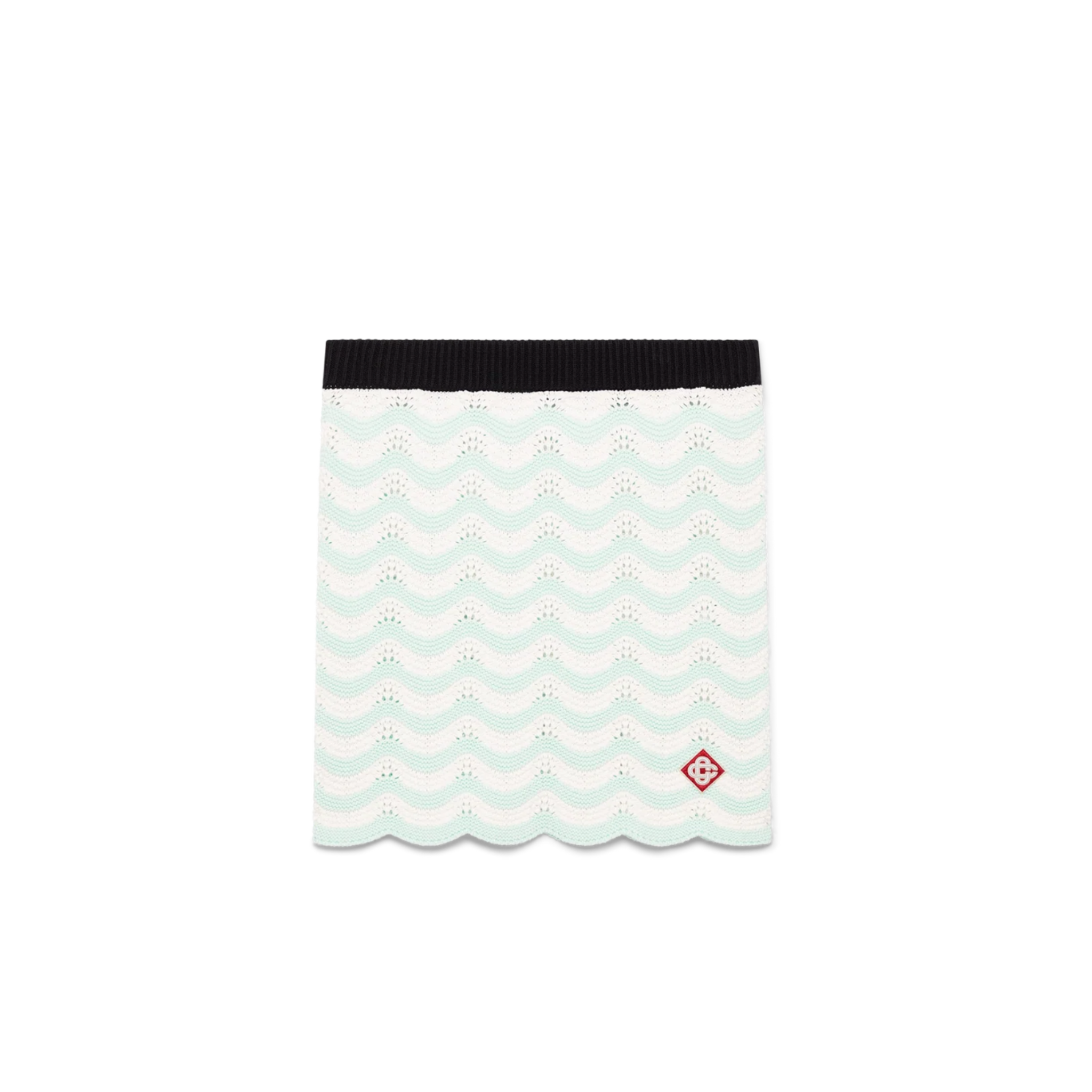 The Casablanca Cotton Wave Crochet Mini Skirt combines artisanal crochet craftsmanship with breathable cotton fabric, offering both comfort and style. Its wave pattern adds a unique texture, making it a standout piece for warm-weather wardrobes. Perfect for layering or wearing solo, this mini skirt delivers a sophisticated yet relaxed look suitable for various occasions.