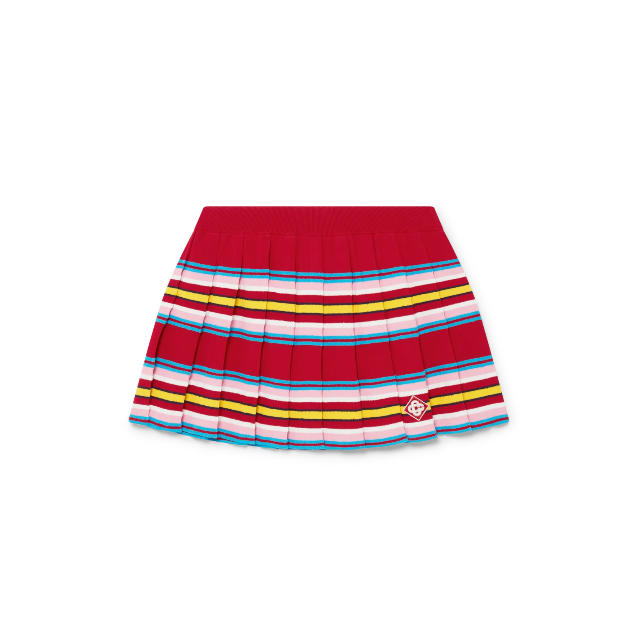 The knit tennis skirt is a fitted mini-skirt design crafted from a merino wool fabric. Completed with an elasticated waistband, contrast edge detail on the hem, stripe detail down the sides, and the Casablanca logo.