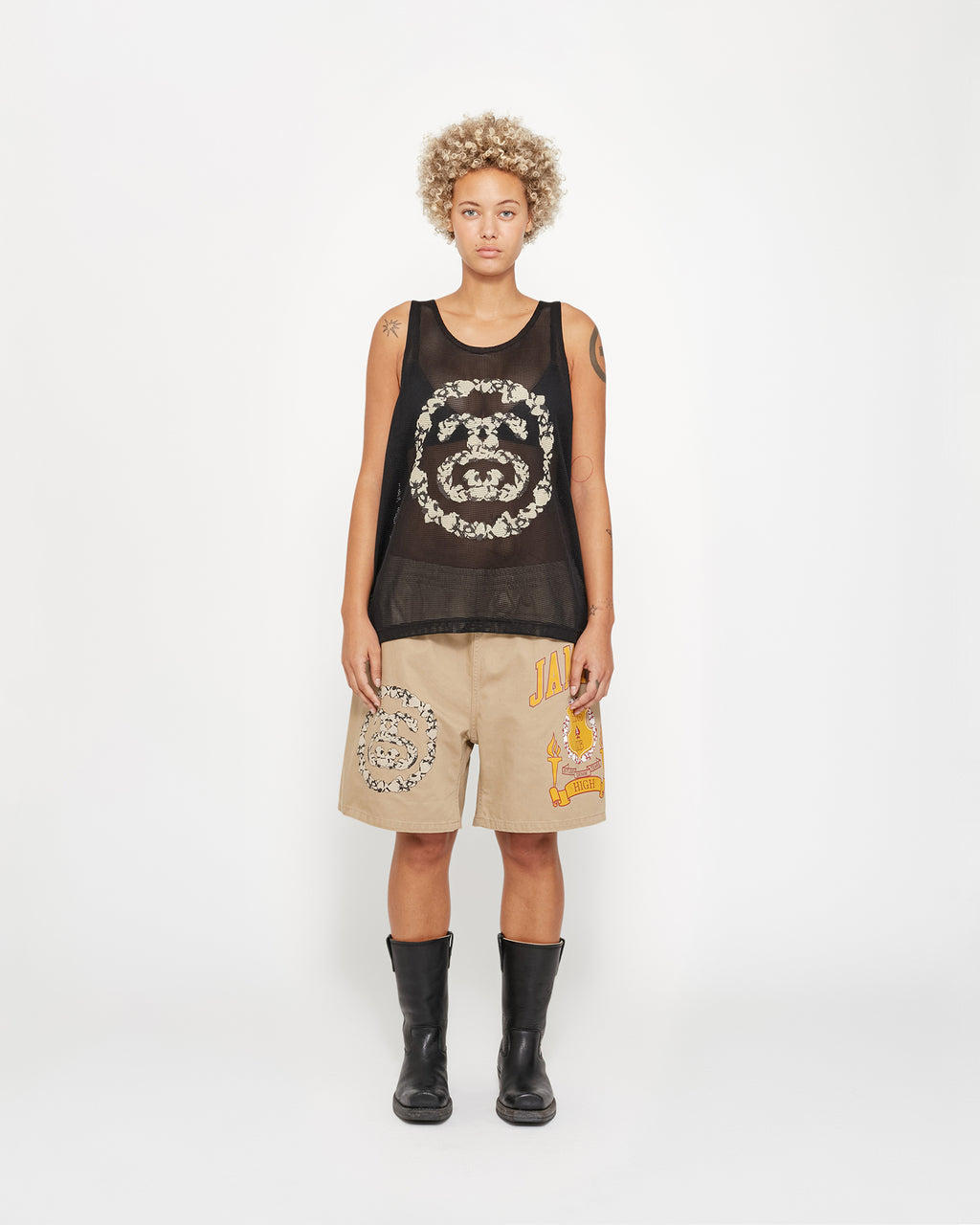 The Stüssy x Denim Tears Mesh Tank combines streetwear edge with thoughtful design. Crafted from breathable mesh fabric, this tank offers lightweight comfort and enhanced airflow, ideal for warm weather or layering. Its collaboration branding reflects a fusion of cultural storytelling and contemporary style, making it a standout piece for collectors and fashion enthusiasts alike. Perfect for those seeking both function and statement in their wardrobe.