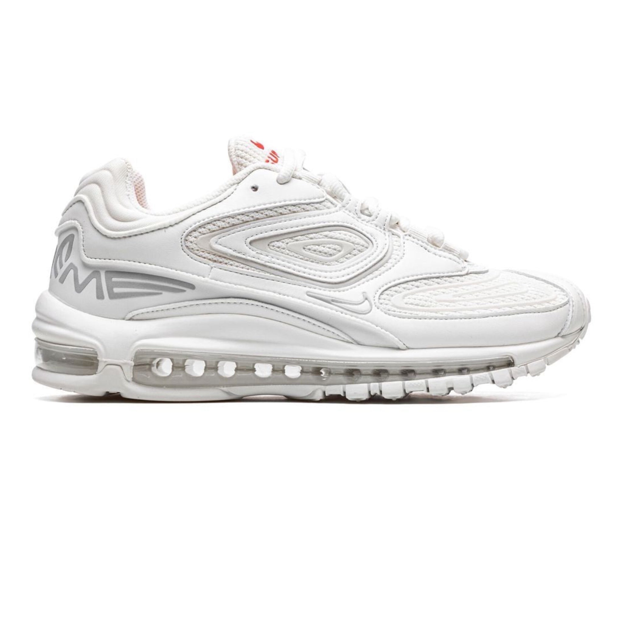 Nike and Supreme collaborate on these Air Max 98 TL sneakers. Taking inspiration from gradient maps, they are detailed with a panelled upper and finished with a cushioned Air Max sole.