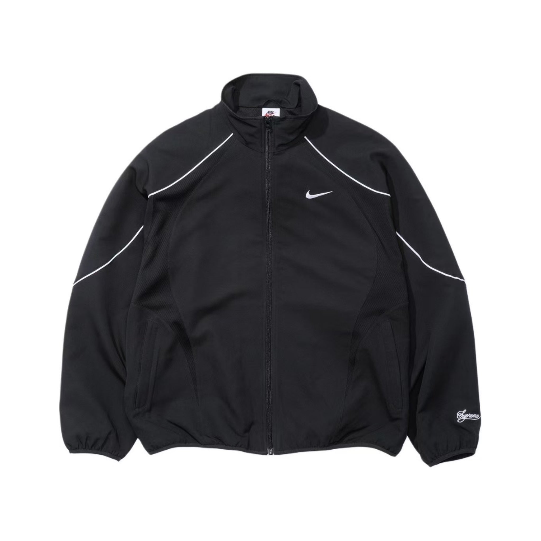 The Supreme x Nike Track Jacket combines iconic streetwear style with performance-driven design. Crafted for comfort and durability, this jacket features a sleek fit and signature branding that elevates any athletic or casual look. Its breathable fabric ensures all-day wearability, making it an essential piece for those seeking both fashion and function in their wardrobe.