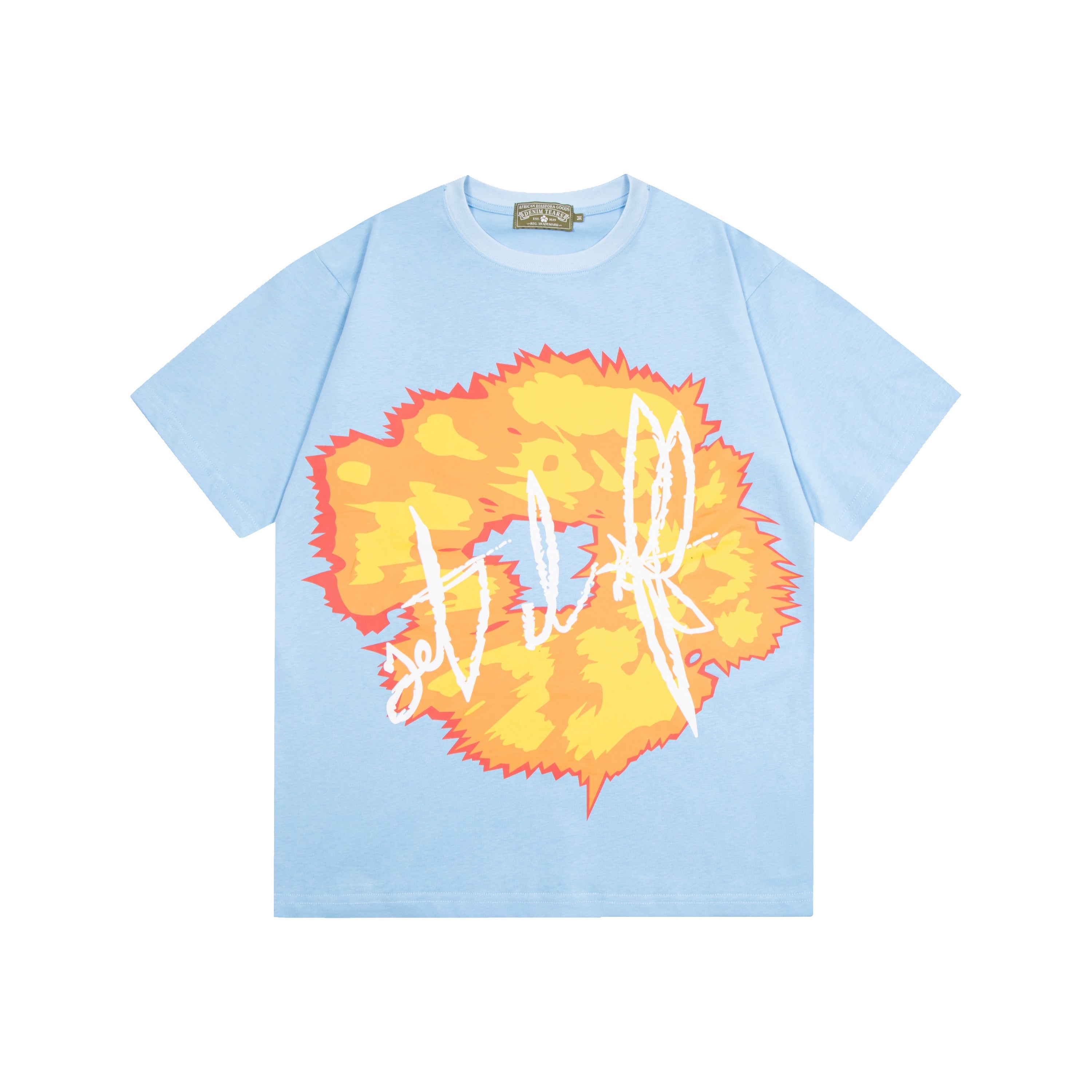 IN COLLABORATION WITH DENIM TEARS SCREEN PRINTED FRONT + BACK GRAPHICS HEAVYWEIGHT TEE MADE IN USA collar.