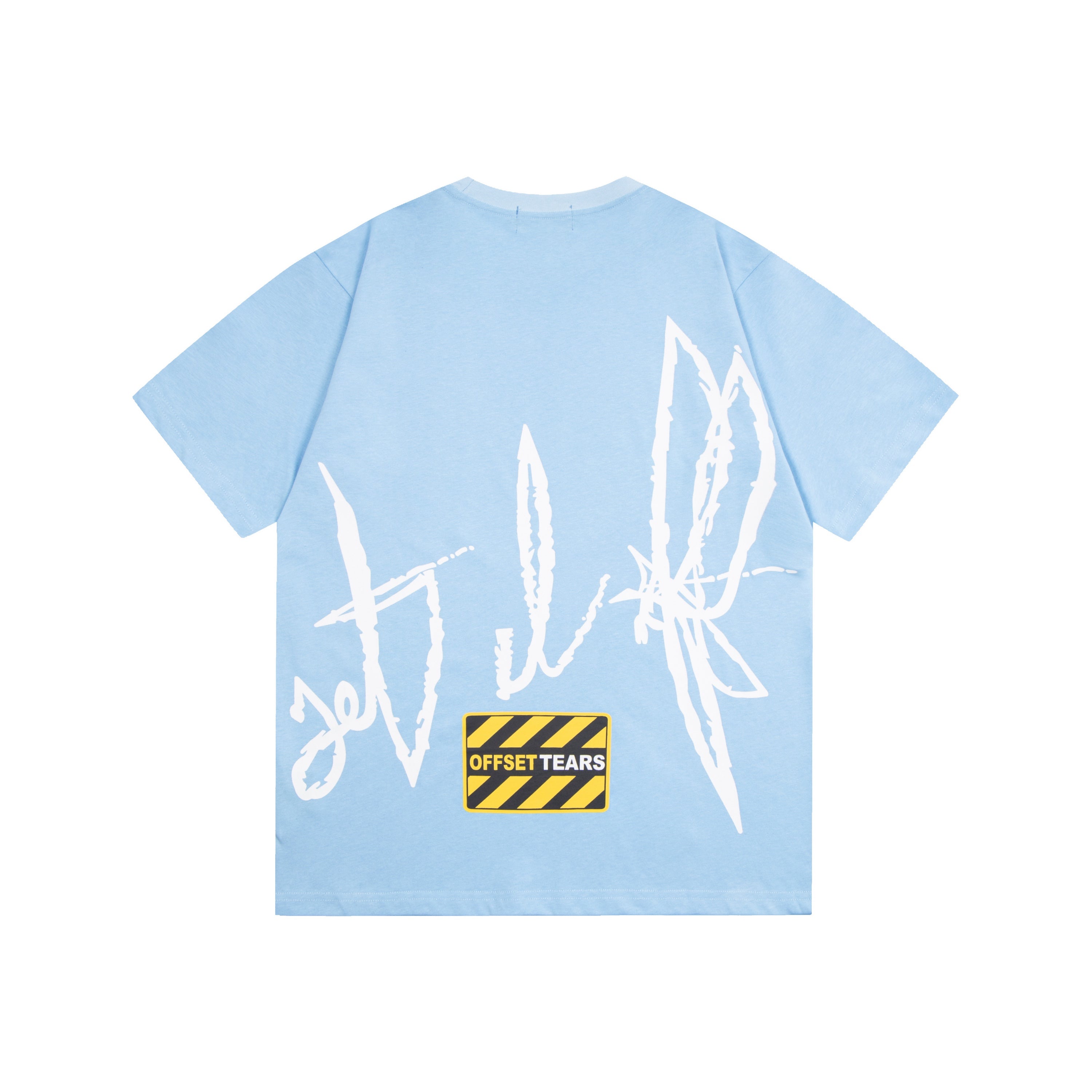 IN COLLABORATION WITH DENIM TEARS SCREEN PRINTED FRONT + BACK GRAPHICS HEAVYWEIGHT TEE MADE IN USA collar.