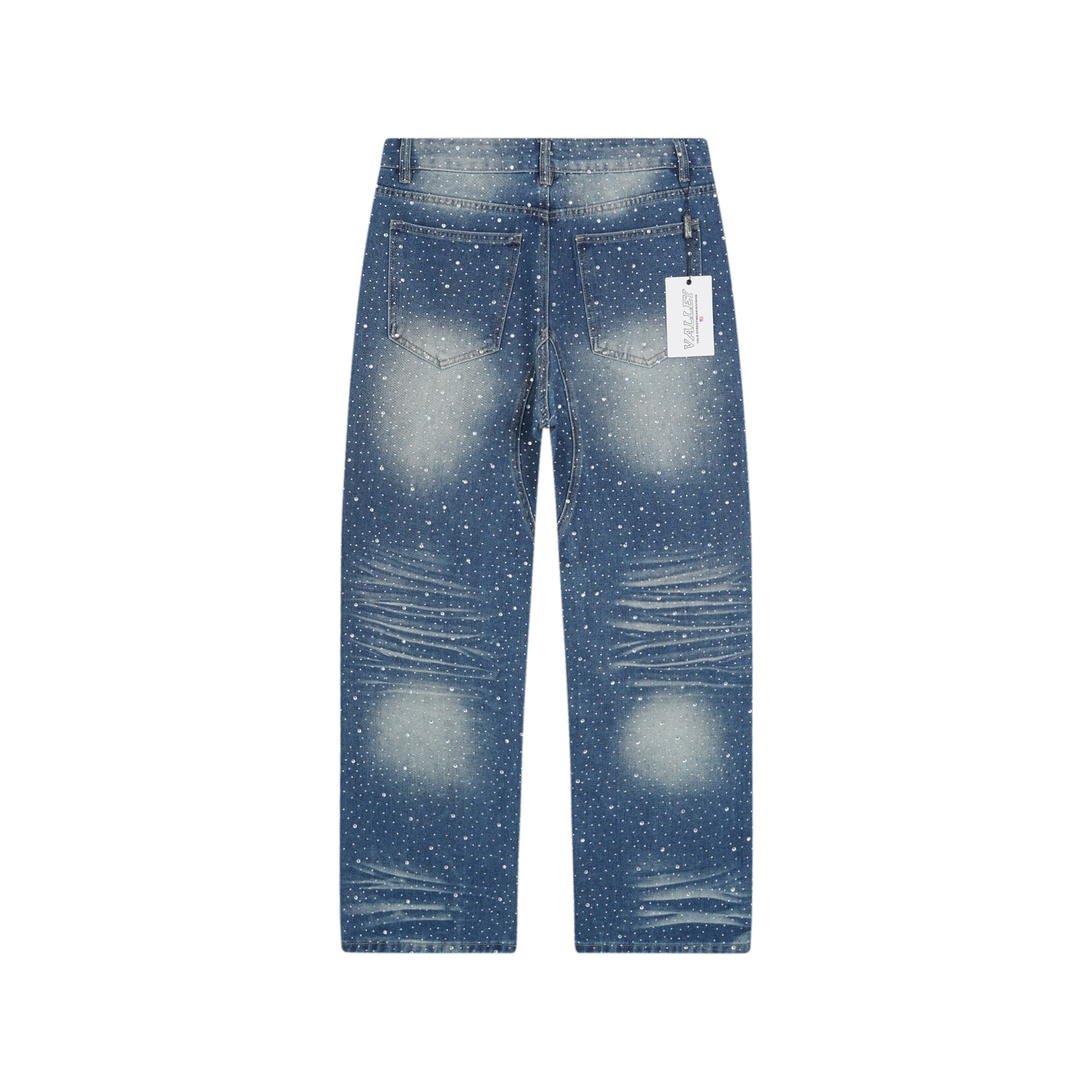The Vale Rain Classic Denim Jean features elegant crystal embellishments along the sides, adding a refined sparkle to classic denim. Expertly crafted for both style and comfort, these jeans offer a distinctive look that elevates everyday wear with subtle luxury. Perfect for those seeking a sophisticated edge in their denim collection.