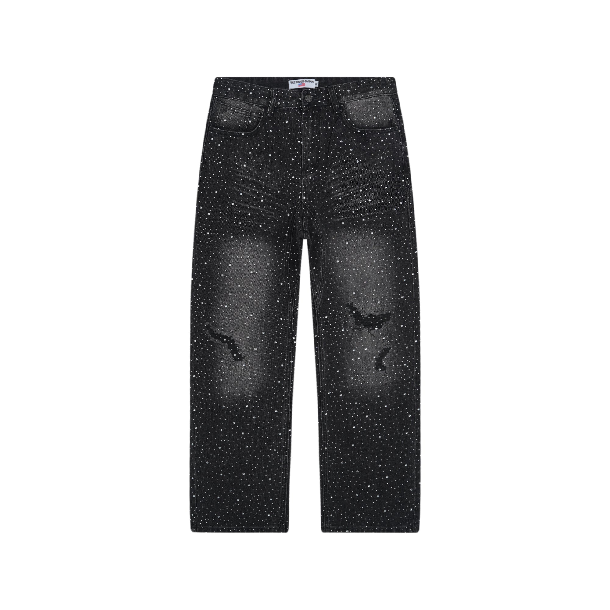The Vale Rain Classic Denim Jean features elegant crystal embellishments along the sides, adding a refined sparkle to classic denim. Expertly crafted for both style and comfort, these jeans offer a distinctive look that elevates everyday wear with subtle luxury. Perfect for those seeking a sophisticated edge in their denim collection.
