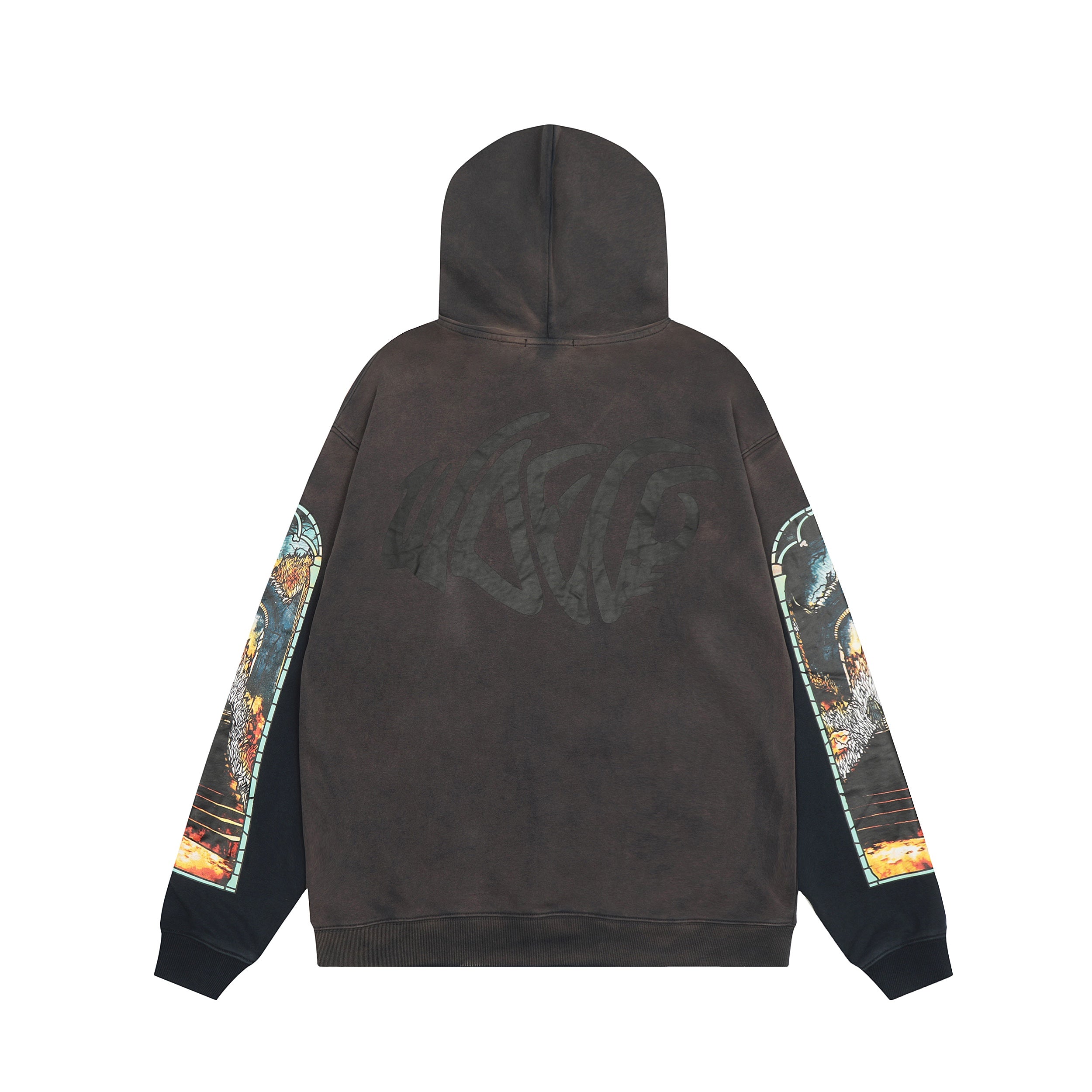 The Descent Hoodie is made from 100% cotton with a regular fit, hooded neck and printed sleeves.