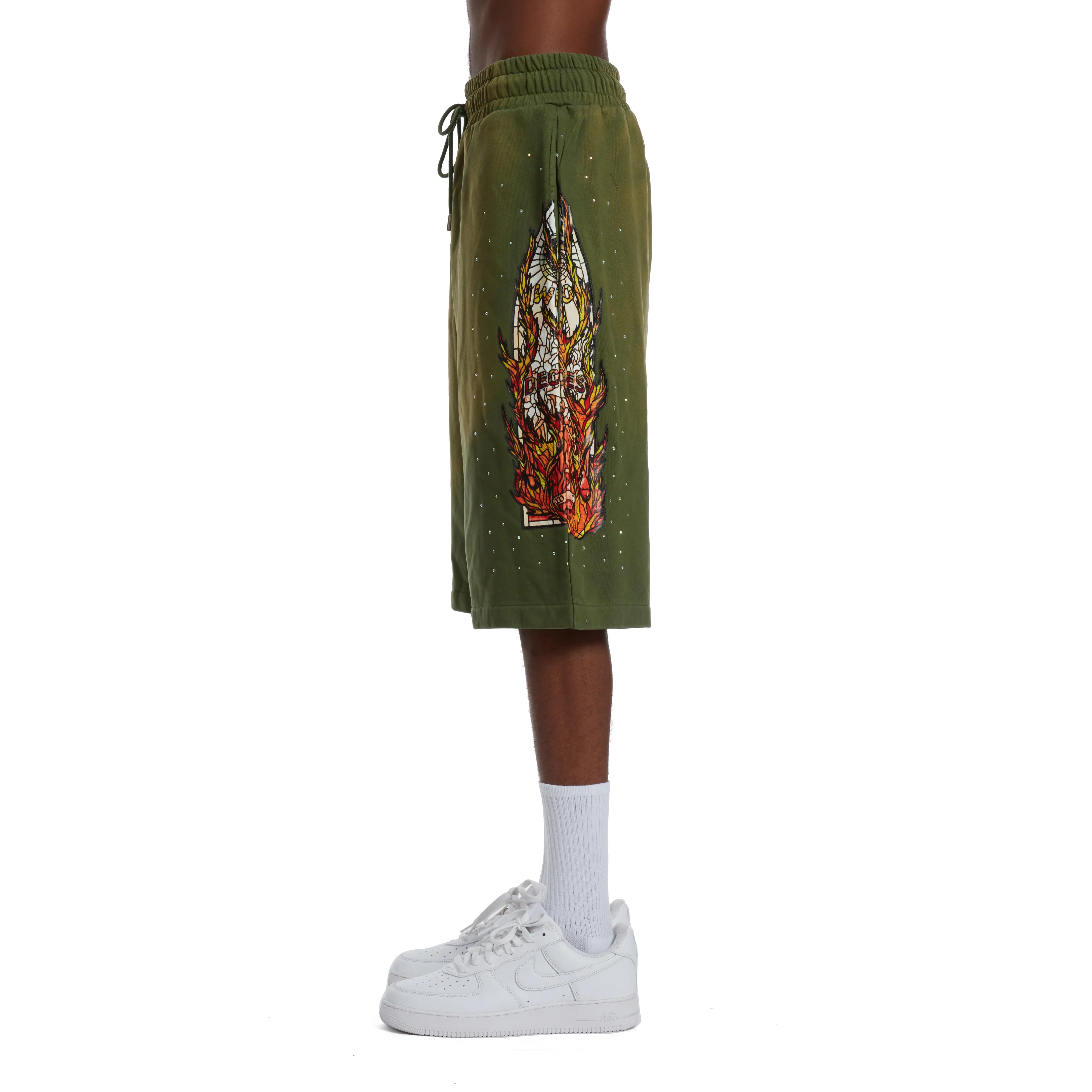 Who Decides War Flame Glass Sweat Shorts