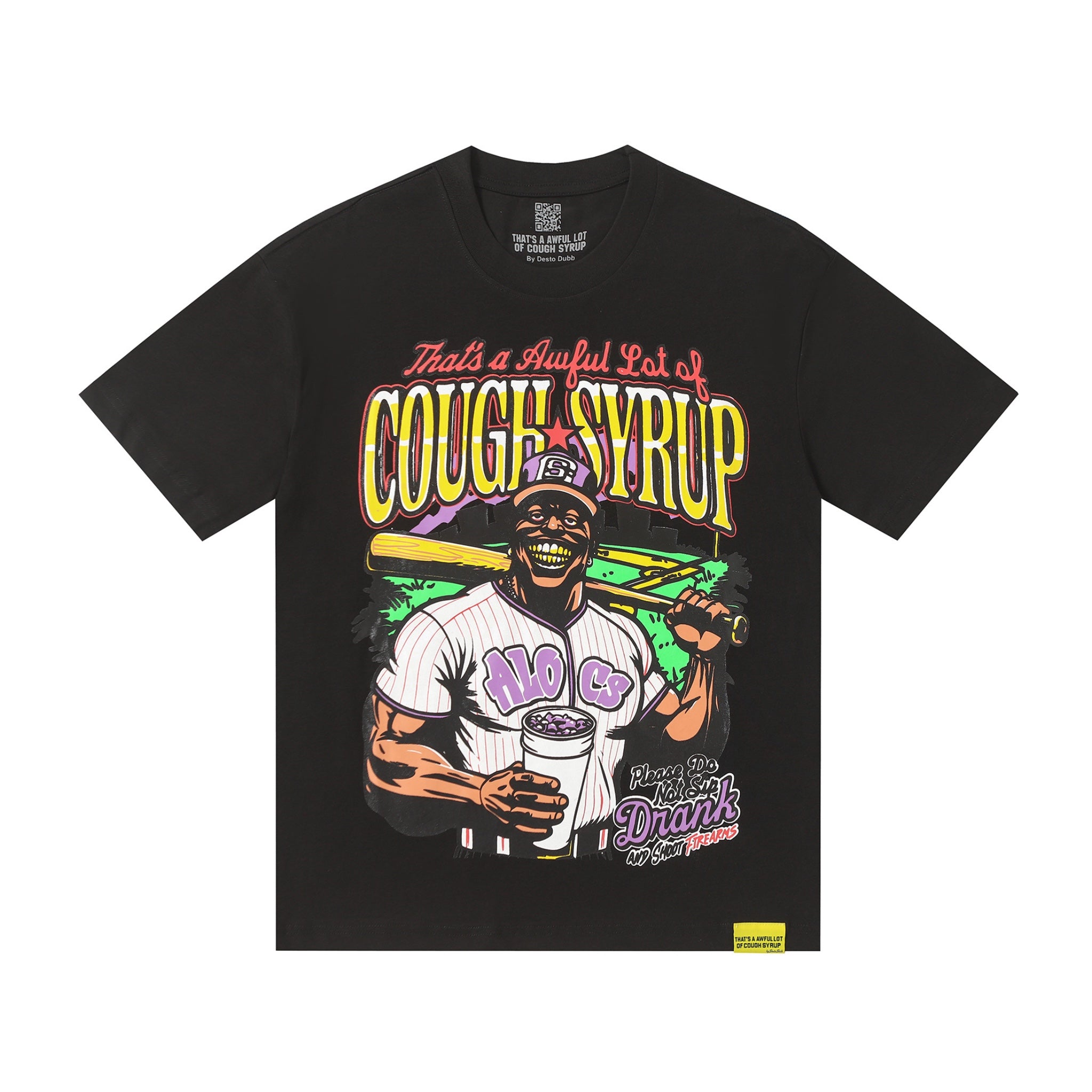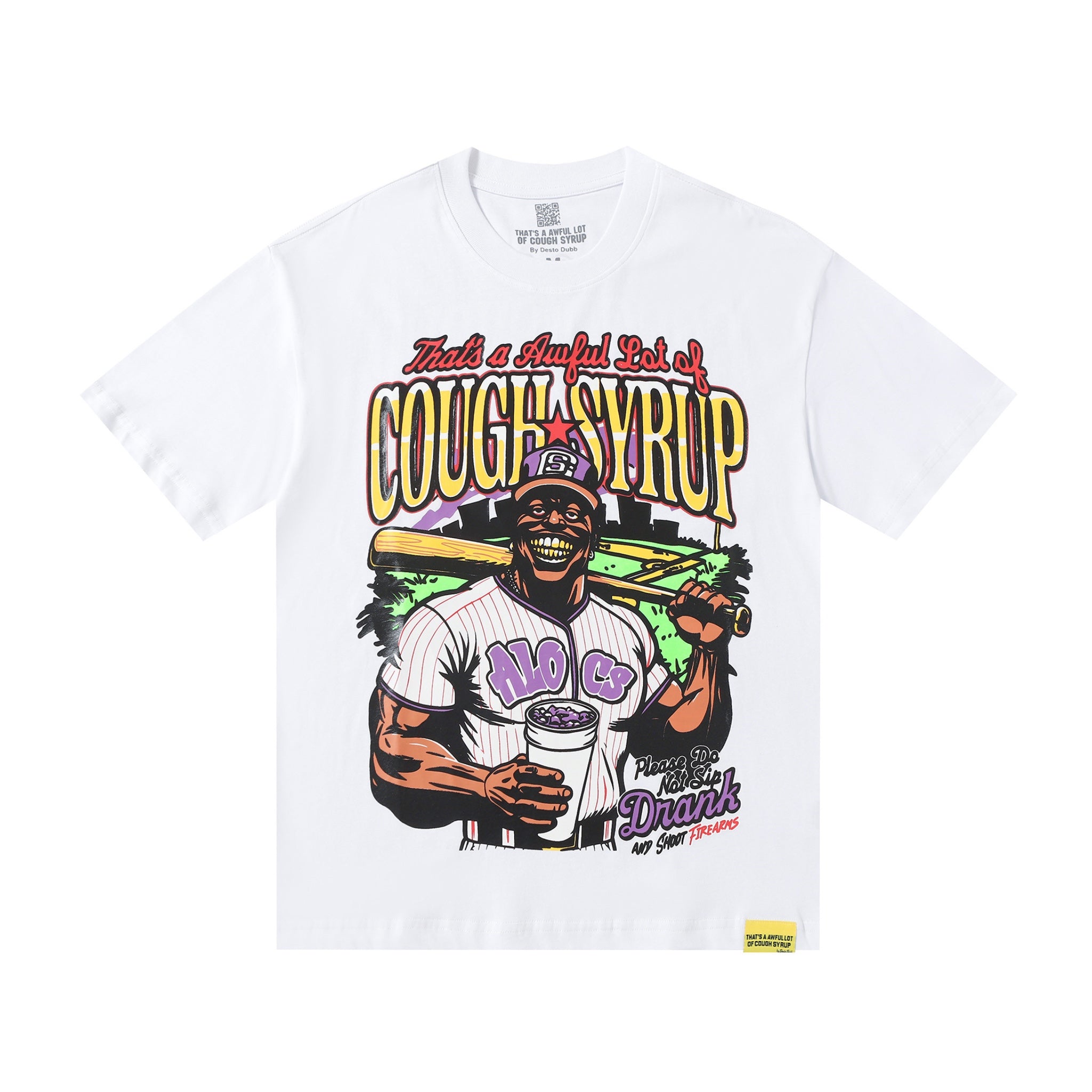 Celebrate your love for the game with the That's A Awful Lot Of Cough Syrup 'Baseball' T-shirt. Expertly crafted from soft, breathable fabric, this tee offers lasting comfort whether you're at the ballpark or relaxing off the field. Featuring a distinctive design that blends baseball culture with playful style, it’s an ideal addition for fans seeking quality and character in their casual wear. Durable and stylish, it’s perfect for everyday support of your favorite sport.