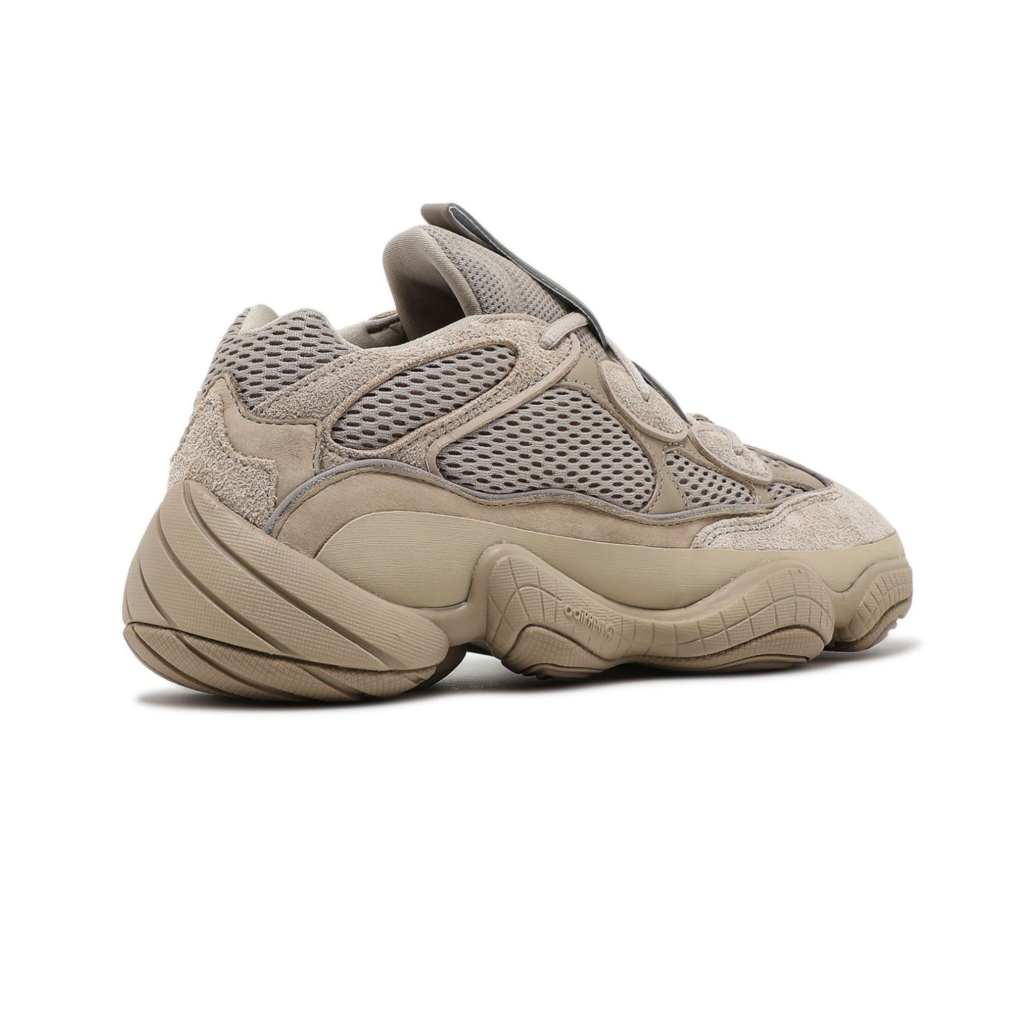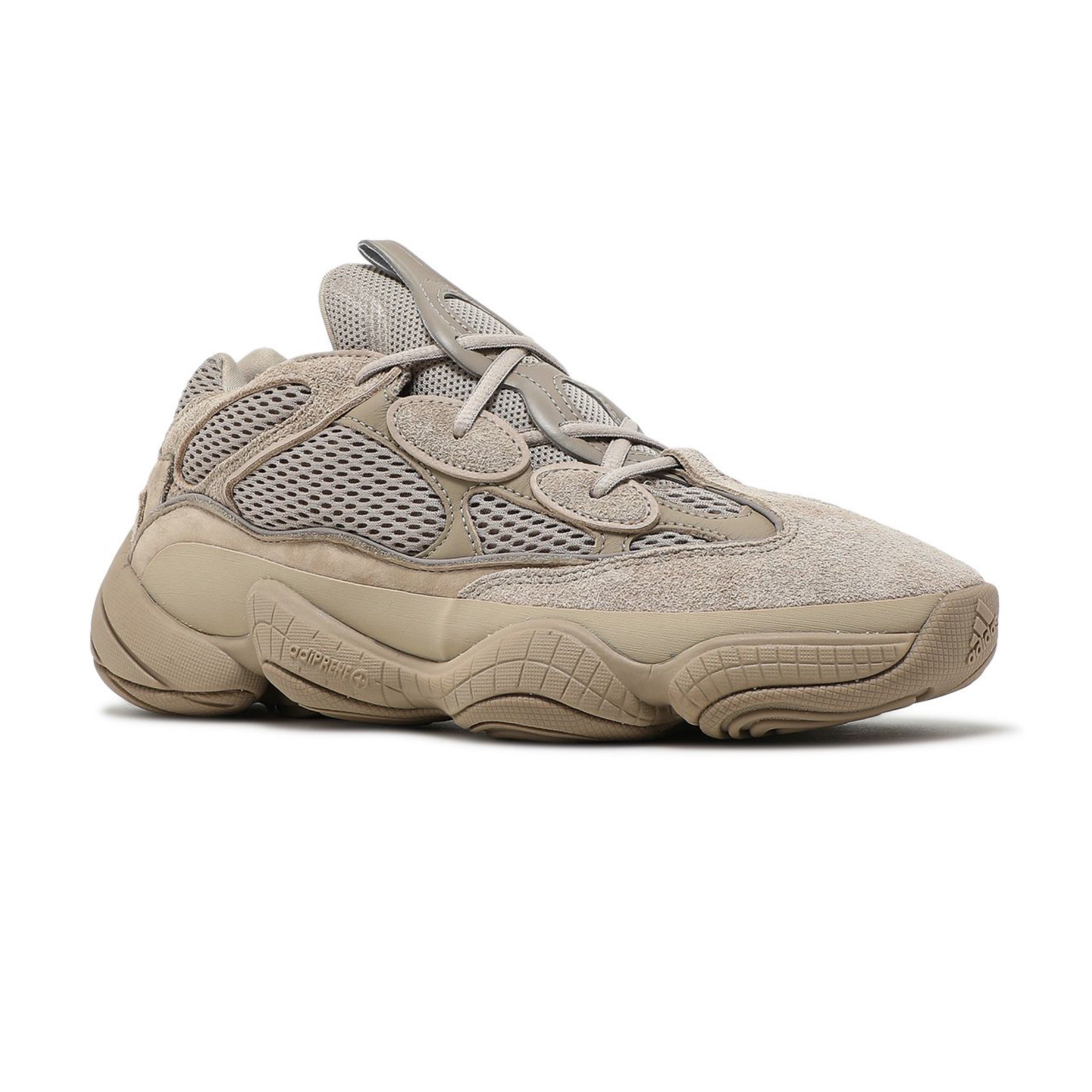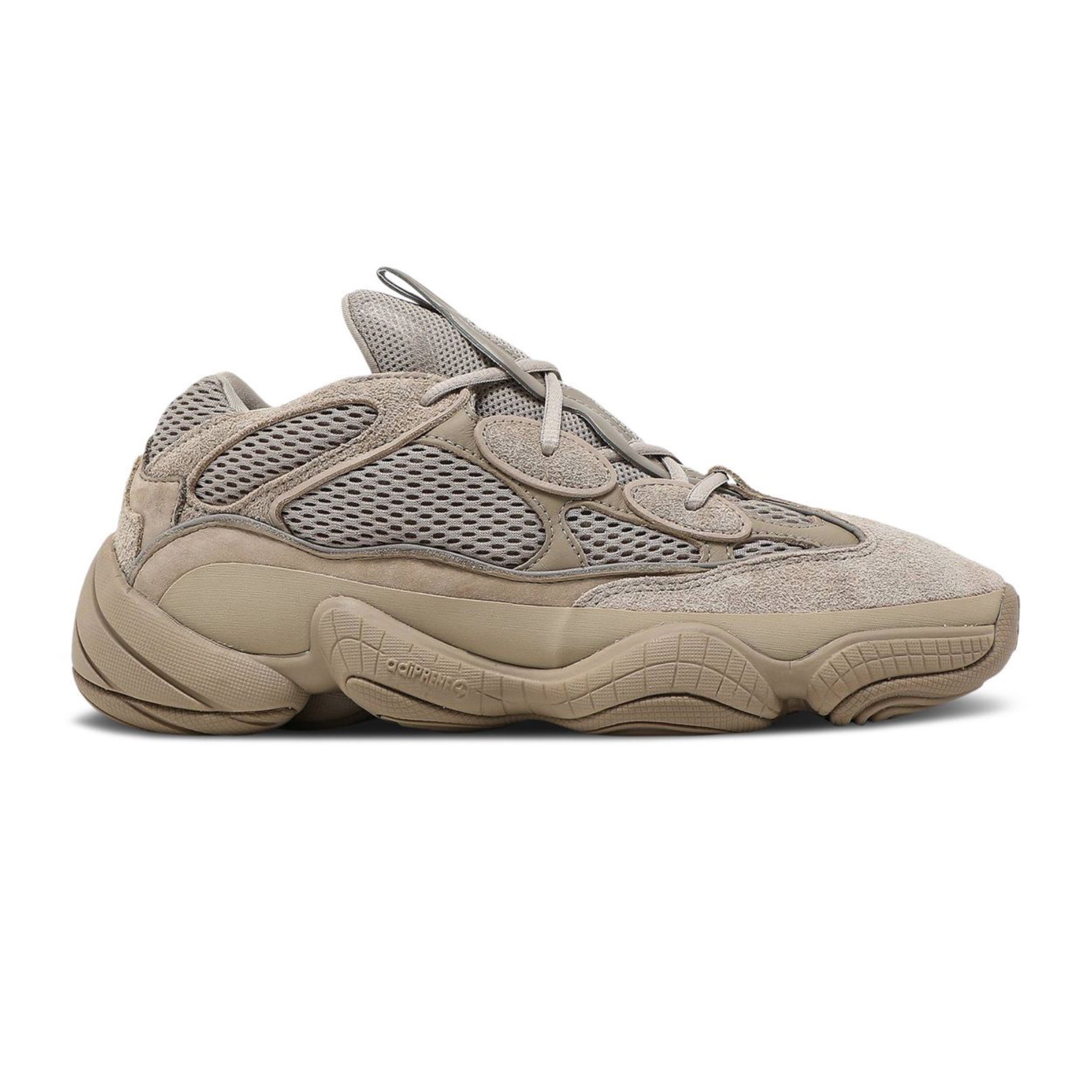 The Yeezy 500 'Taupe Light' features a neutral look and a mixed-material construction. The shoe's upper features an open-mesh base, overlaid by cow suede and leather and finished entirely in Taupe Light. The eyelets include reflective piping to accent the look, while the midfoot sports a rubber wrap to bolster the design. Underfoot, an Adiprene+ midsole is included for cushioning, with a rubber outsole offering traction.