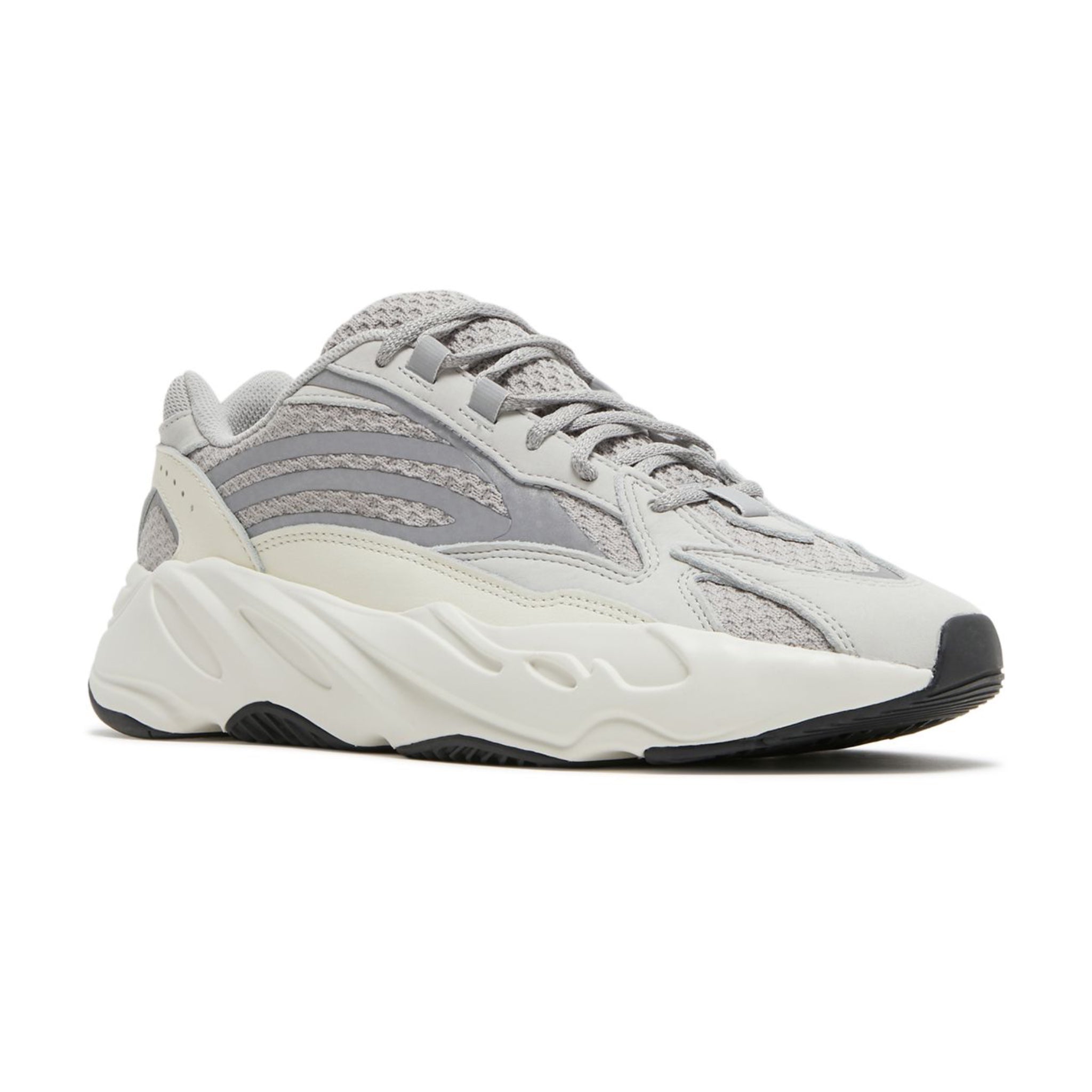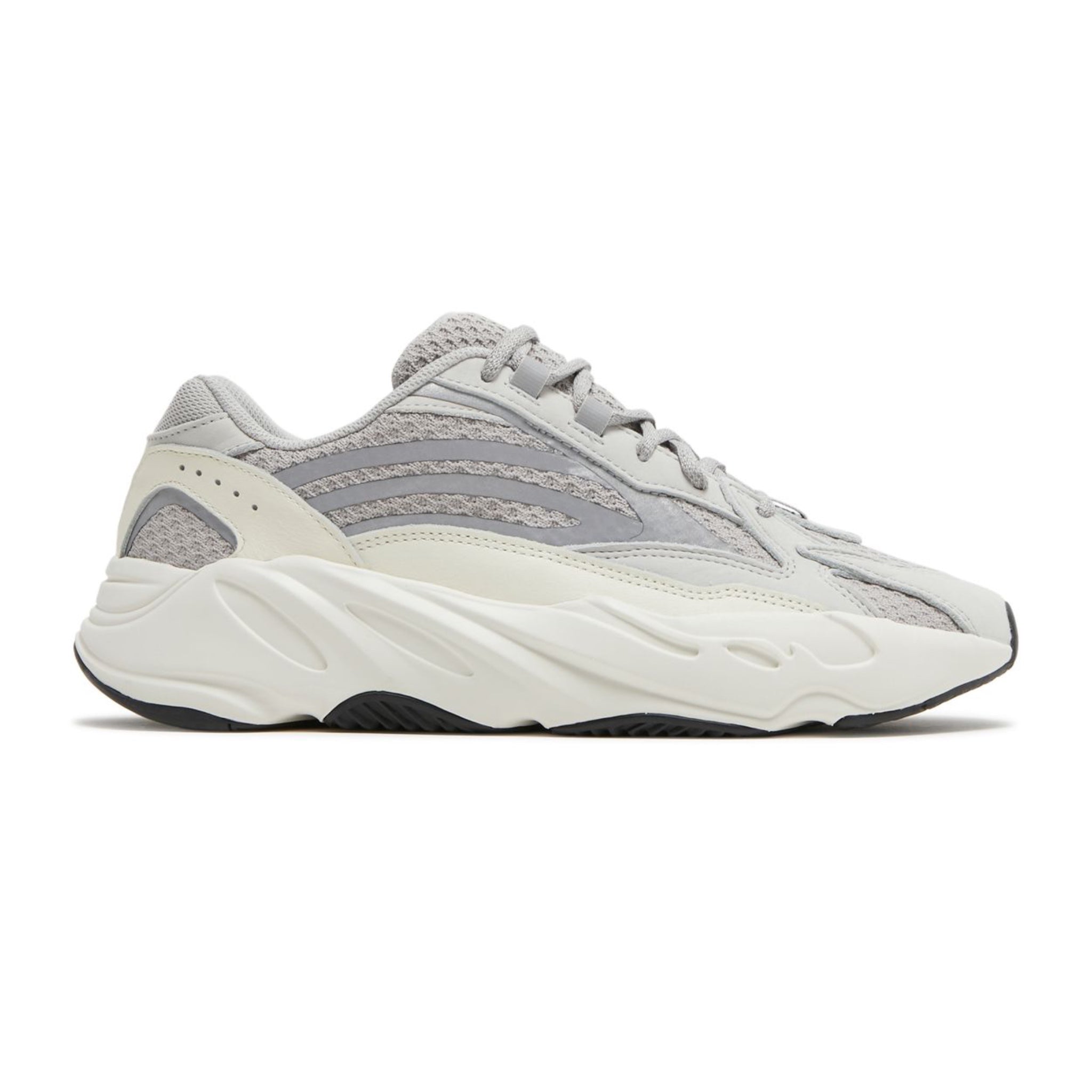 The adidas Yeezy Boost 700 V2 'Tephra' 2024 arrives with a Primeknit upper featuring neutral shades of silver, grey, and black and laced up for a secure fit. The shoe features a full-length Boost midsole encased in a ribbed TPU cage which is supported by a grippy rubber outsole. A bold black side stripe complements the swirling design, running along the lateral side and matching the heel’s webbing pull tab.